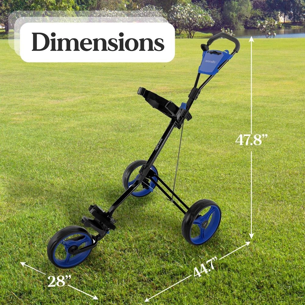 - MADE TO LAST: The golf push carts 3 wheel folding golf hand cart is made w/ heavy-duty steel frame construction material & equipped w/ upper/lower brackets w/ elastic strap. Features durable & compact size for easy storage & transport