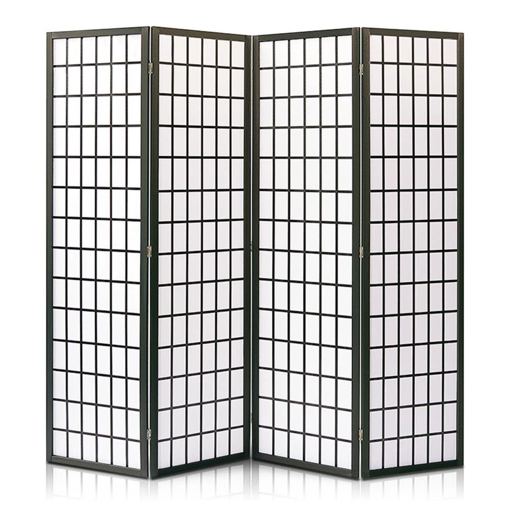 - 4 PANELS: This decorative room divider has 4 panels with a black and white checkered frame to complement any home decor, and it’s made of durable hardwood and cloth. The wooden room divider allows light to pass through while offering privacy