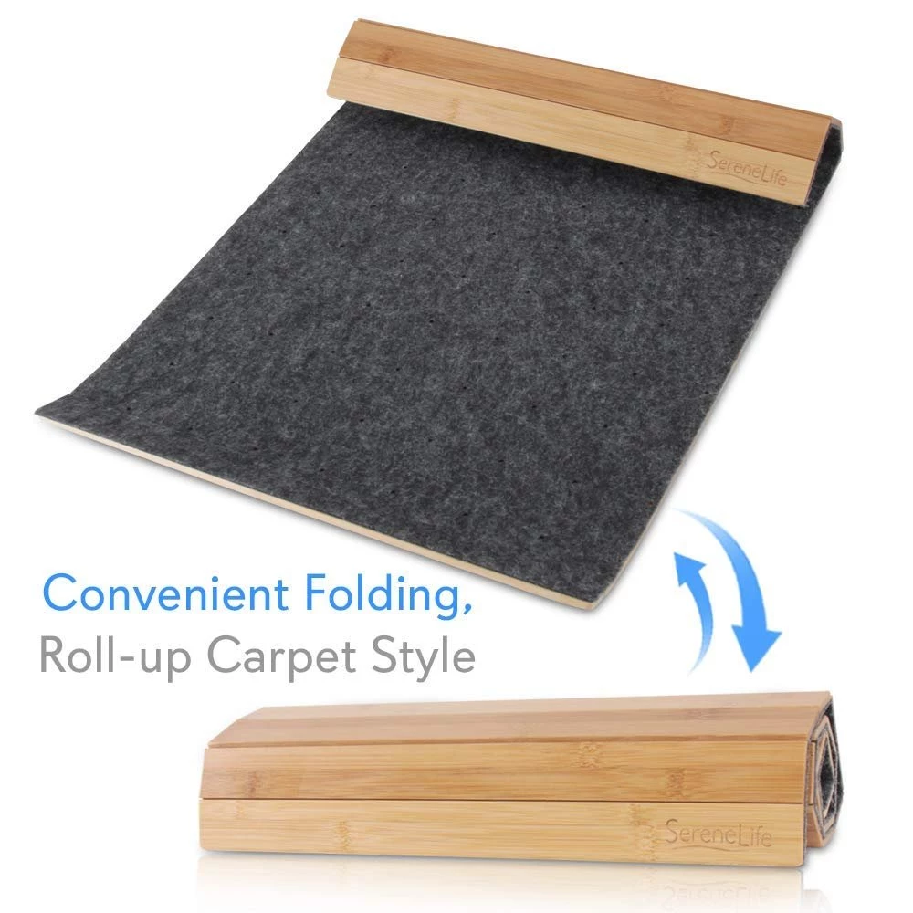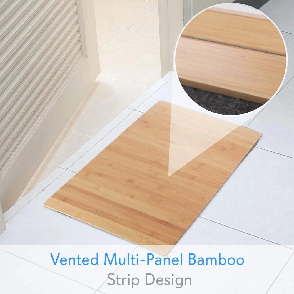 Features: – Bamboo Floor Bath Mat – Naturally Water-Resistant & Weatherproof – Vented Multi-Panel Bamboo Strip Design – Non-Slip Fabric Rug Underside for Stability – Stain-Resistant & Easy-to-Clean – Convenient Folding, Roll-up Carpet Style – Lacquer Finish for Long-Lasting Protection – Perfect for Tiled Bathroom Floors & Kitchens – For Indoor Use Technical Specifications: – Construction Material: Bamboo, Felt Fabric – Dimensions (L x W x H): 23.6’’ x 15.8’’ x 0.24’’ –inches