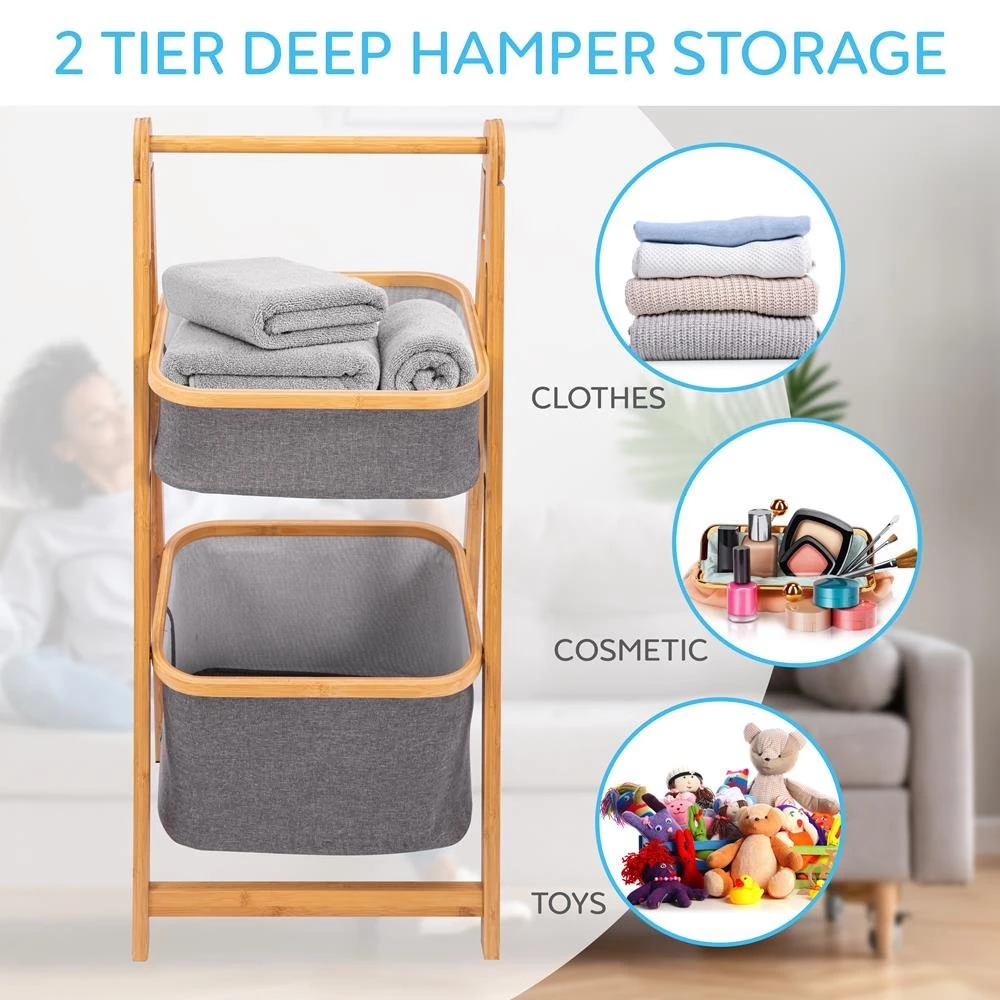 - 2-TIER STORAGE: The Bamboo Shelf Storage Hamper is a large-capacity multi-functional storage rack divided into grid storage. Made of environmentally friendly material. Toy or rubble storage basket 17.5” x 13’’ x 39’’