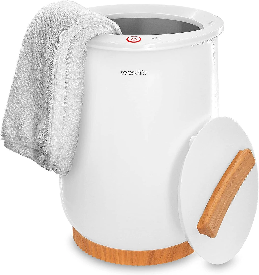 - EVEN HEATING: SereneLife towel warmers for bathroom heats towels all the way through and eliminates cold spots for a spa-like experience. Features double-walled insulated lid that keeps heat in while staying cool to the touch