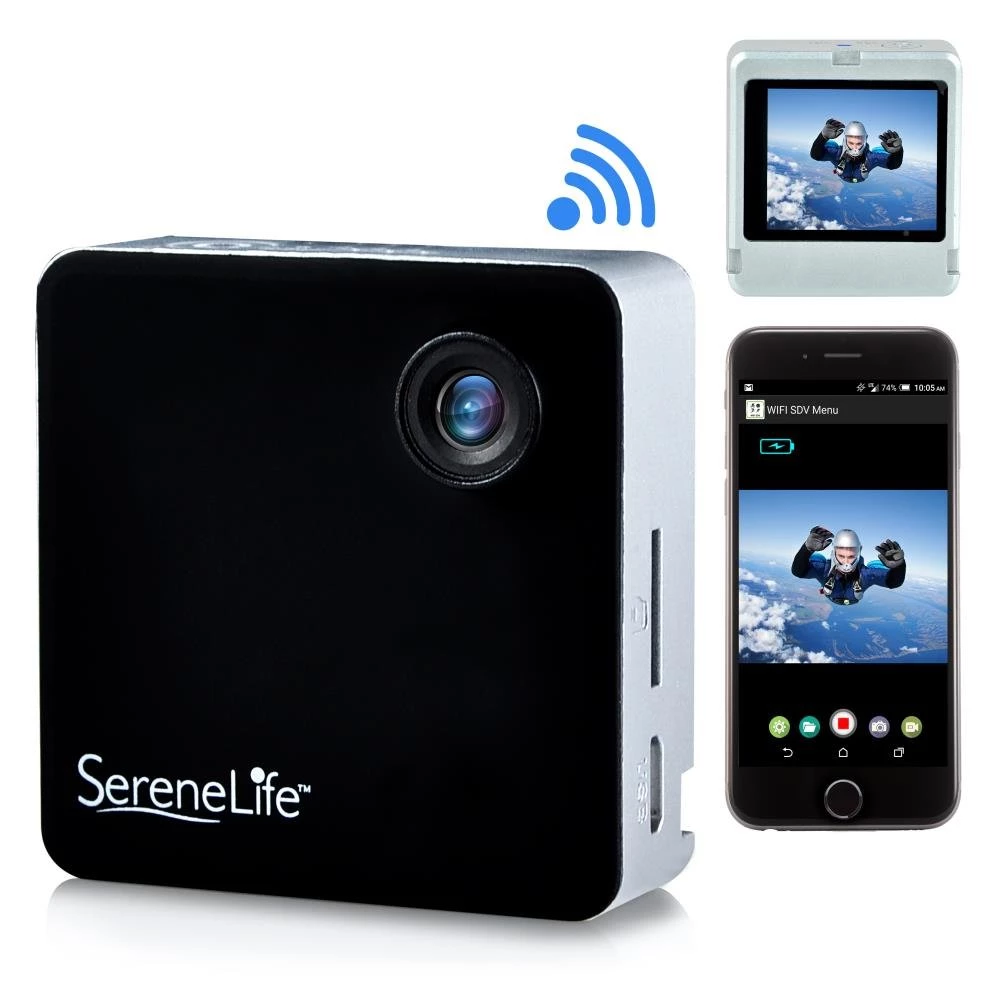 SereneLife SLBCM18 – Full HD 1080p Wi-Fi Pocket Cam, 2-in-1 Camera + Camcorder, Control via Smartphone – Features: Compact, Portable & Powerful Pocket Cam – Ability to Snap Pictures & Record Video – Full HD 1080p Video Recording – Hi-Res Crisp Image Capture – Wi-Fi Wireless Control Ability – Control the Cam via the Downloadable ‘WIFI SDV’ App – 1.8’’ Digital LCD Display – Playback Your Recorded Media On-Screen -Built-in Rechargeable Battery – Micro SD Card Slot – Easy File Sharing & File Transfer – Loop Recording for Continuous Capture – Integrated Microphone for Audio Recording – Includes Attachment Clip & USB Charging Cable – Anti-Shake Camera Stabilization – Compatible with Mac & PC – The ‘WIFI SDV’ App: Control Your Camera via Your Smartphone – Snap Pictures & Record Video Wirelessly – Available for Download on Android & iOS – Free to Download – Technical Specs: Video Resolutions: 1080p, 720p, WVGA, VGA – Image Resolutions: 12MP, 10MP, 8MP, 5MP, 3MP – File Formats: AVI (Video), JPG (Image) – Image Sensor: Full Color, REAL 2M CMOS – Battery: Lithium iOn, 430mAh 3.7V – Wide Angle Lens: 120 Degree – Maximum Micro SD Card Support: Up to 32GB – Camera Size (L x W x H): 2.0’’ x 2.0’’ x 0.6’’.