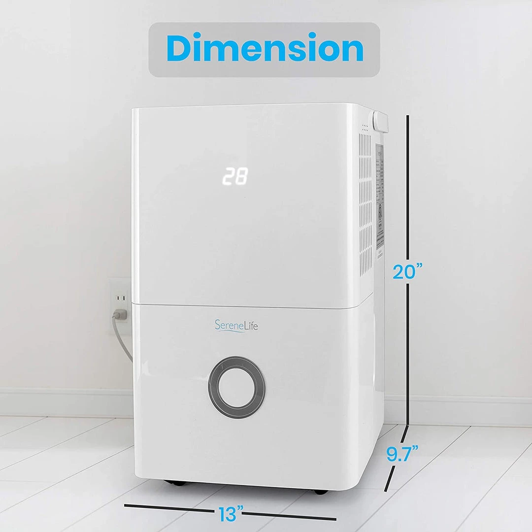 - 1500 SQ FT COVERAGE: The SereneLife Compact Dehumidifier is designed to dehumidify a room up to 1500 square feet wide. It has 4 liters water tank capacity that can quickly & effectively remove up to 30 pints / 14 liter of moisture from the air per day