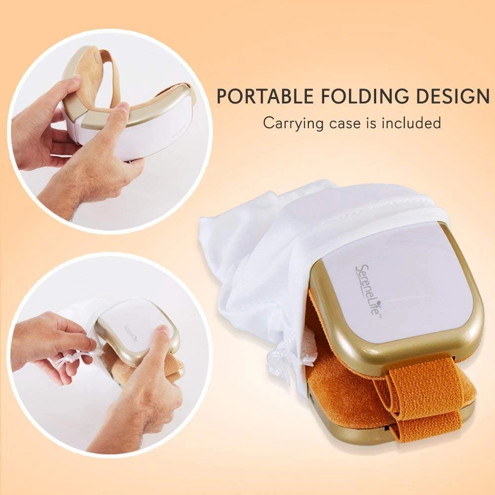 - PORTABLE FOLDING DESIGN: Comes in a small, foldable & fashionable goggle visor style which makes it easy to carry around. The compact eye mask also has a rechargeable battery to ensure you can use it wherever you go. The carrying case is included as well