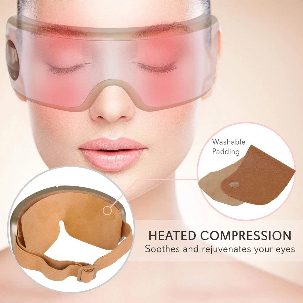 - AIR PRESSURE VIBRATION: This portable eye massager provides moderate air compression to relieve eye strain & vibrating power to prevent eye muscle pain. The heat compress can also help you improve dark circles & achieve healthier eyes