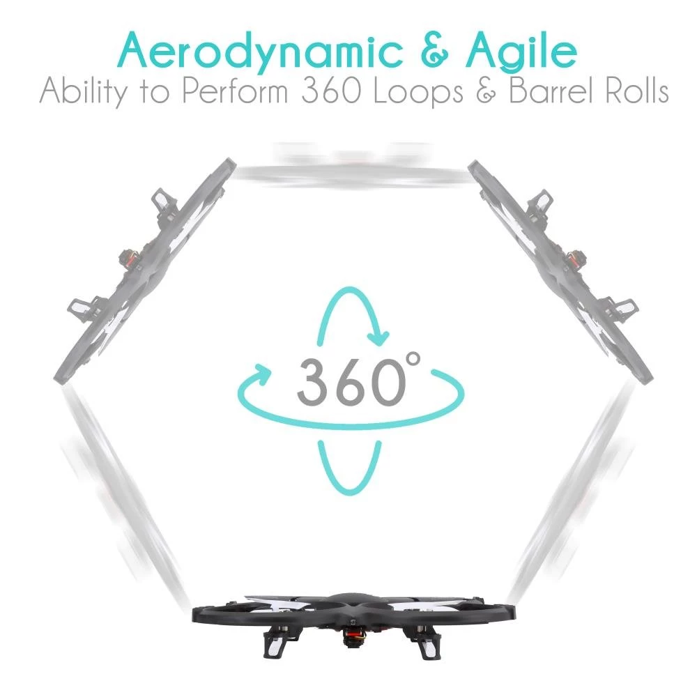 - 6-AXIS GYRO CONTROLLER: This RC quadcopter wireless drone has a 6-axis gyroscopic control system & a durable frame that is responsible for its stability, wind resistance & easy maneuverability which is essential in taking smooth video & doing a stunt.