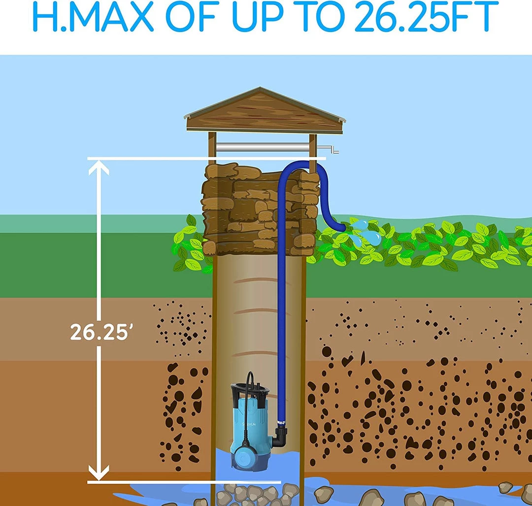 - POWERFUL SUCTION: This 750W powerful sump pump submersible has a Qmax of up to 3,302 gallons per hour (12,500L/H) and H.Max of up to 26.25ft. (8 Meters) and can easily tackle any draining job in just a short period of time