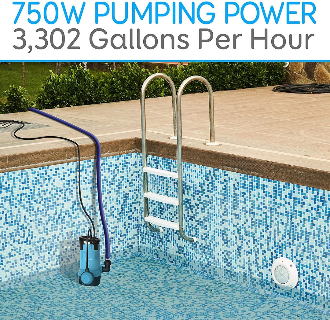 Features: Compatible with Flat PVC Hose in 0.98’’ and 1.26’’ inches Screw Thread in NPT1-1/4’’and NPT5/8’’ Auto Float Switch: Start/Stop Automatically Rugged and High-Quality Materials Designed and Manufactures with Valid Safety Requirements Lower Noise and Energy-Efficient Oil-Free Motor, Requires no Maintenance Thermoplastic Body Resists Corrosion Great to Drain the Dirty Water from the Pond, Garden Pond, or Water Tanks Perfect for Household & Utility Applications of Transferring Water from One place to Another What’s in the Box: (1) Water Pump (3) Power Adapters Technical Specs: Power Supply: 750W (1HP) Construction Material: Engineered ABS and Metal Power Output: AC 110V 60Hz Qmax: 3,302 gallon/H (12,500L/H ) H.Max: 26.25ft. (8m) Power Cord Length: 16 feet Type: Water Pump (blue) Diameter of Pipe: Screw thread in NPT1-1/4” & NPT5/8”. Flat PVC Hose in 0.98’’ and 1.26’’ inches Applications: Garden, Yard, Swimming pool, Pond, Flooded Area Product Dimension (L x W x H): 6.2” x 6.1” x 13.4” -inches Sold as: 1 Weight: 10 lbs.