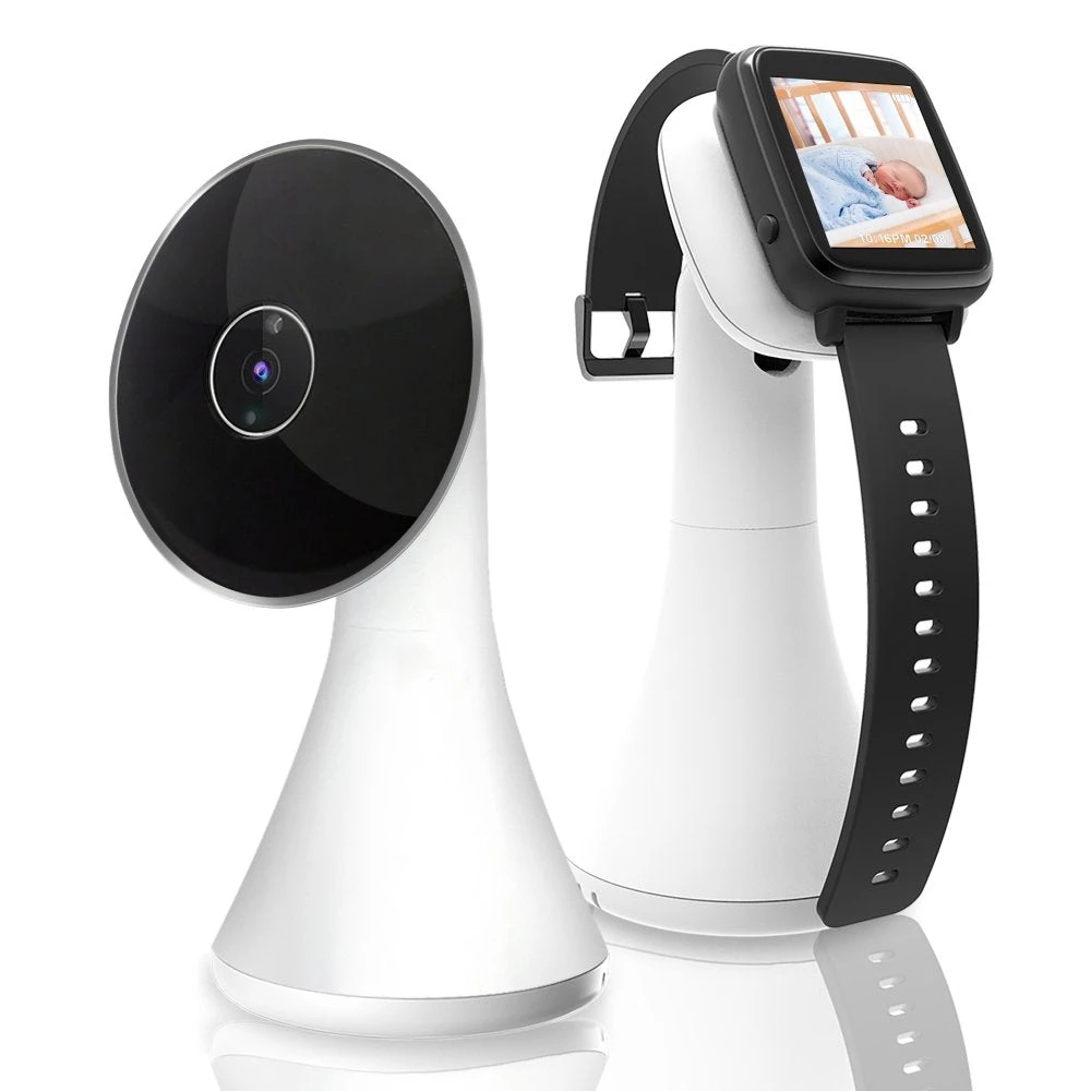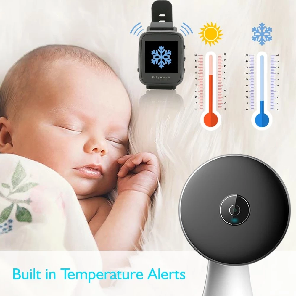 Wireless Baby Camera Monitor System – Universal Mount Two Way Audio Video Cam/Infant/Child Monitoring w/Digital Black Smart Watch – Mic, Speaker, Temperature, Night Vision