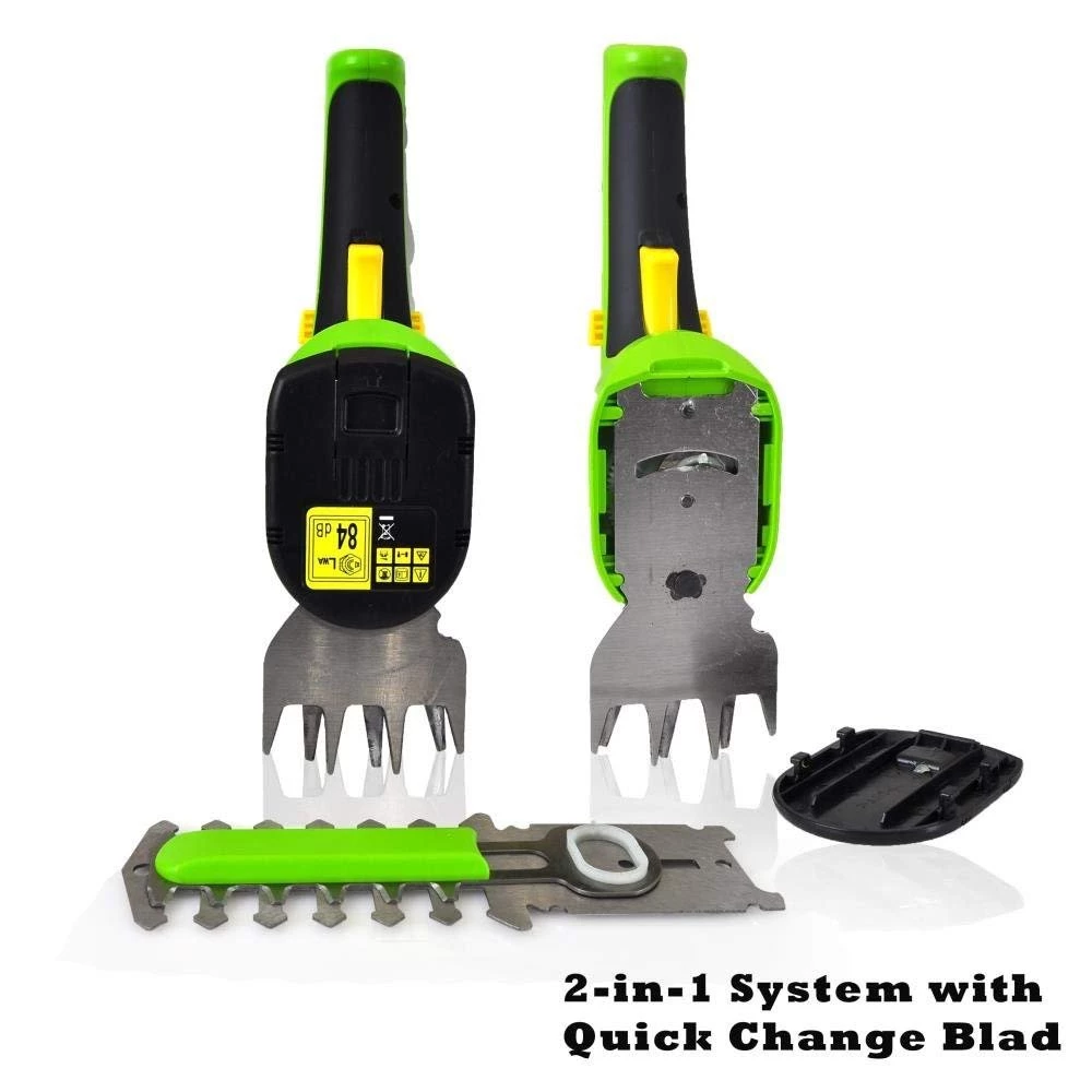 - RECHARGEABLE: The battery grass shears is a hassle-free way to clean your yard. Included is a built-in removable battery for convenient charging. Includes battery wall charger adapter. Average charge time is 4 hours.