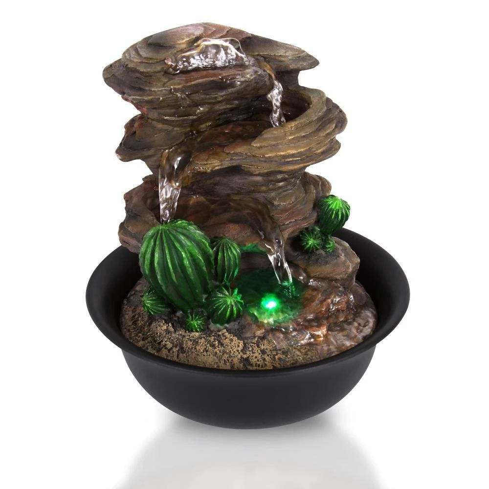 - LIGHTS UP THE MOOD: This 3-tier relaxing tabletop fountain decoration has a subtle LED illuminated lighting effect that is really pleasing to the eye and that’s sure to improve your comfort.