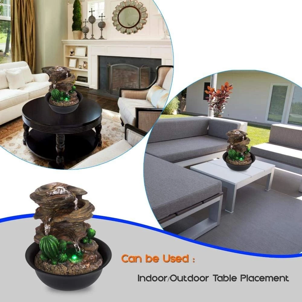 - INDOOR & OUTDOOR SAFE: A versatile gardening and landscaping piece, this cool tiered desktop cascade LED fountain can be placed anywhere inside or outside your home. Perfect for your bedroom, garden or patio!