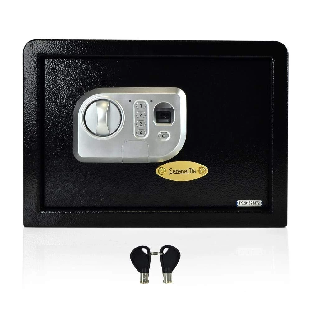 The SereneLife Fingerprint Safe Box will keep your valuables secure & protected. Use the front panel digital button pad to easily control the electronic locking system. Enjoy hassle-free operation and quick access to your belongings after using your fingerprint or entering your customizable key code. The safe box also allows for manual access with (2) included keys. Up to (20) records of fingerprints can be registered and saved for multiple user access. Additional features include rugged steel alloy construction, dual security steel door locking bolts, corrosion & stain-resistant powder coat finish, along with pre-drilled anchor holes for permanent mounting in a convenient location. Store your valuables and keep them protected with the SereneLife Electronic Fingerprint Safe Box.