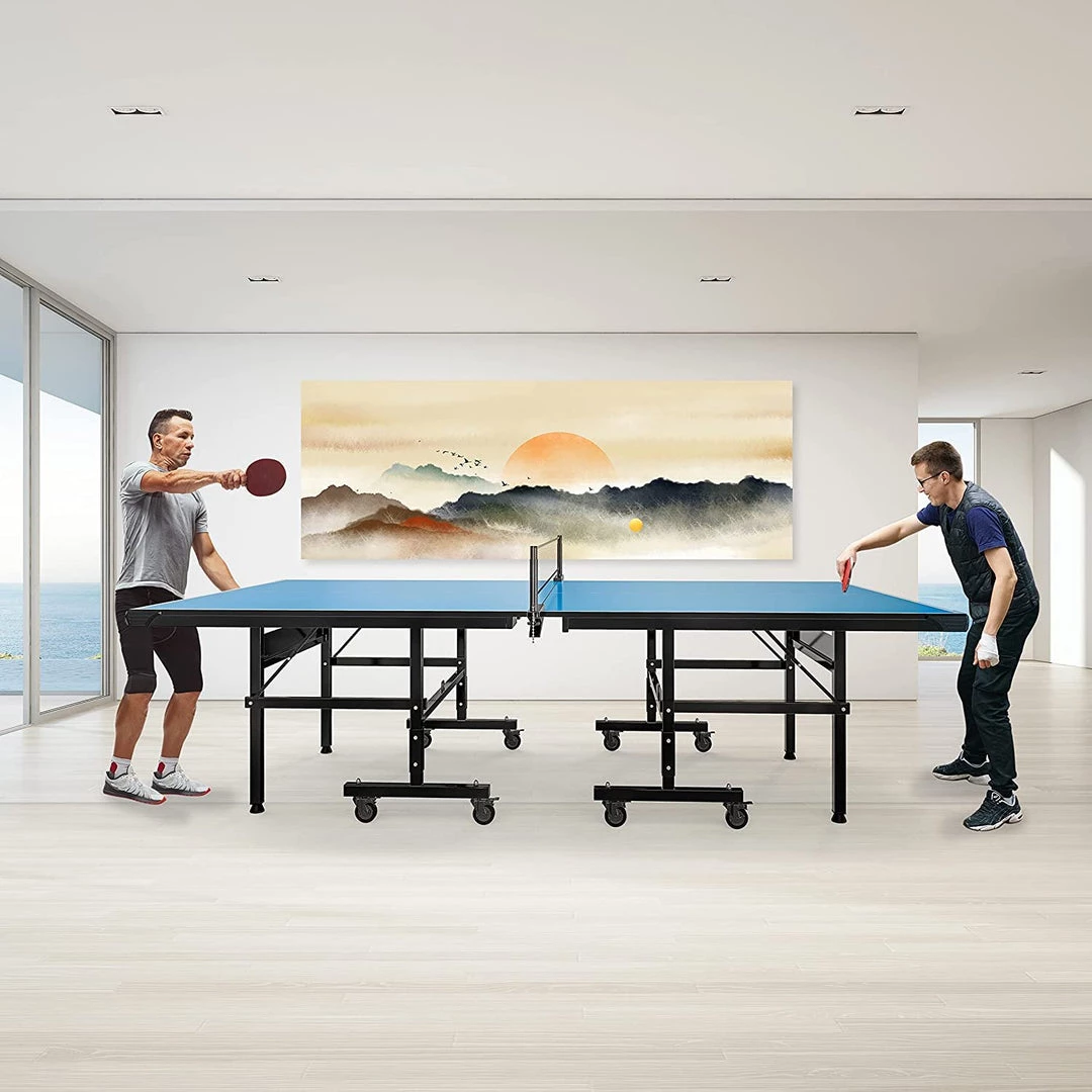 - EASY ASSEMBLY: This ping pong table indoor comes 50% pre-assembled and features a foldable design for easy storage. Can be easily set-up by two people in just 40 minutes. Comes w/ a net set w/ a convenient clamp system for hassle-free attachment