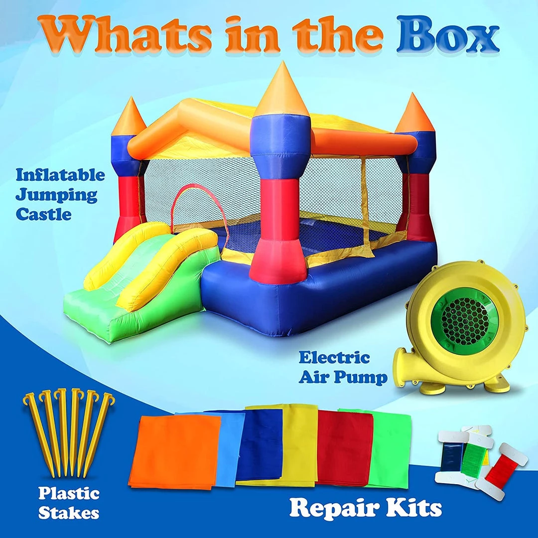 - EASY TO SET UP: This inflatable jumper bouncy castle is super easy to set up and takedown. It comes with a heavy-duty electric air pump and inflates in less than a minute and folds in a compact size with a carrying bag for easy storage and travel