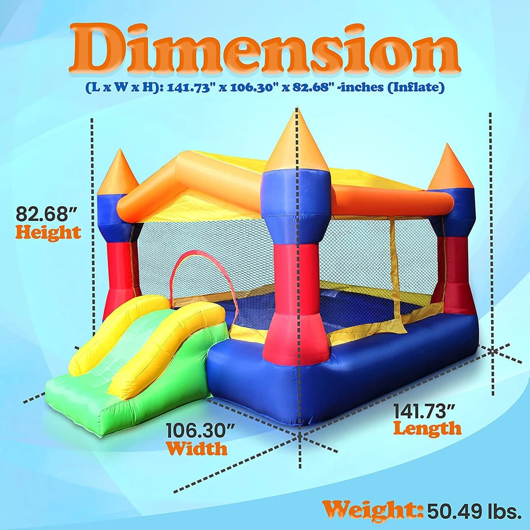 This bouncy house for kids outdoor indoor provides ample space to bounce around. Features a jumping area size of (L x W x H) 106.30” x 106.30” x 82.68” -inches suitable for 2 to 3 kids to play together