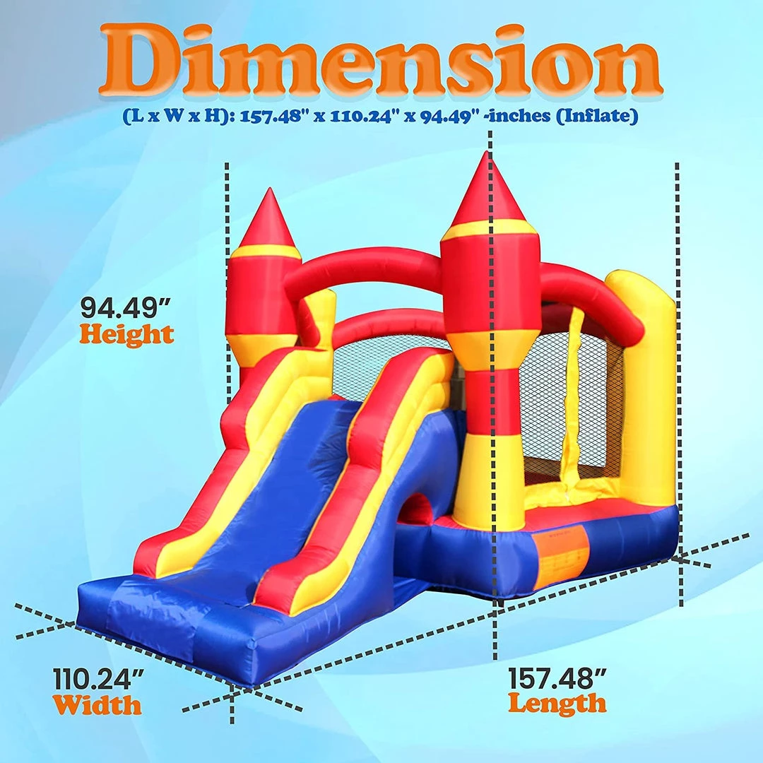 The bounce castle is made with exclusive high-strength 420D+840D nylon construction material with adopted high-quality sewing technology to withstand years of repeated use for limitless bouncing fun