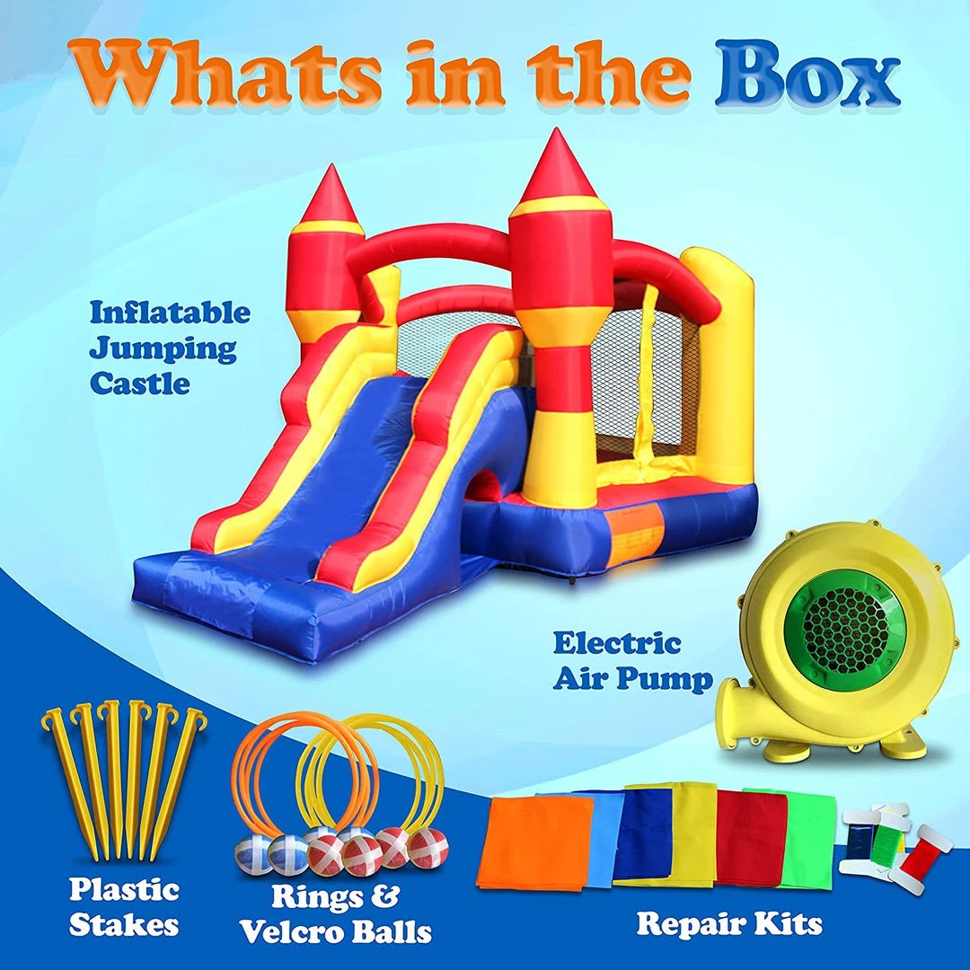 - EASY TO SET UP: This inflatable jumper bouncy castle is super easy to set up and takedown. It comes with a heavy-duty electric air pump and inflates in less than a minute and folds in a compact size with a carrying bag for easy storage and travel