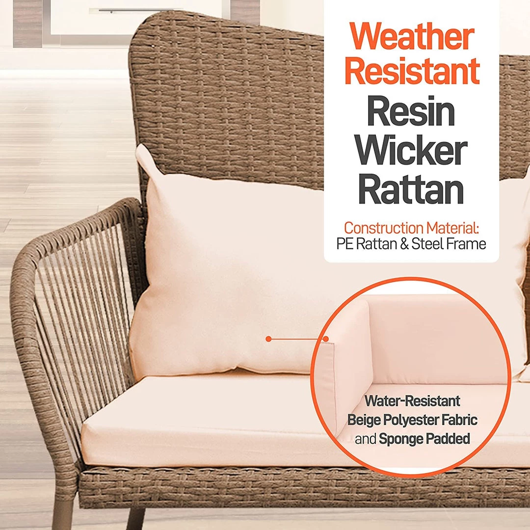 - EASY TO ASSEMBLE: Thanks to the rattan construction, assembling this furniture set will take less effort! Easily move the set around the house whenever you like. The loveseat offers 500 lbs. max weight capacity, 220 lbs. for the single chair