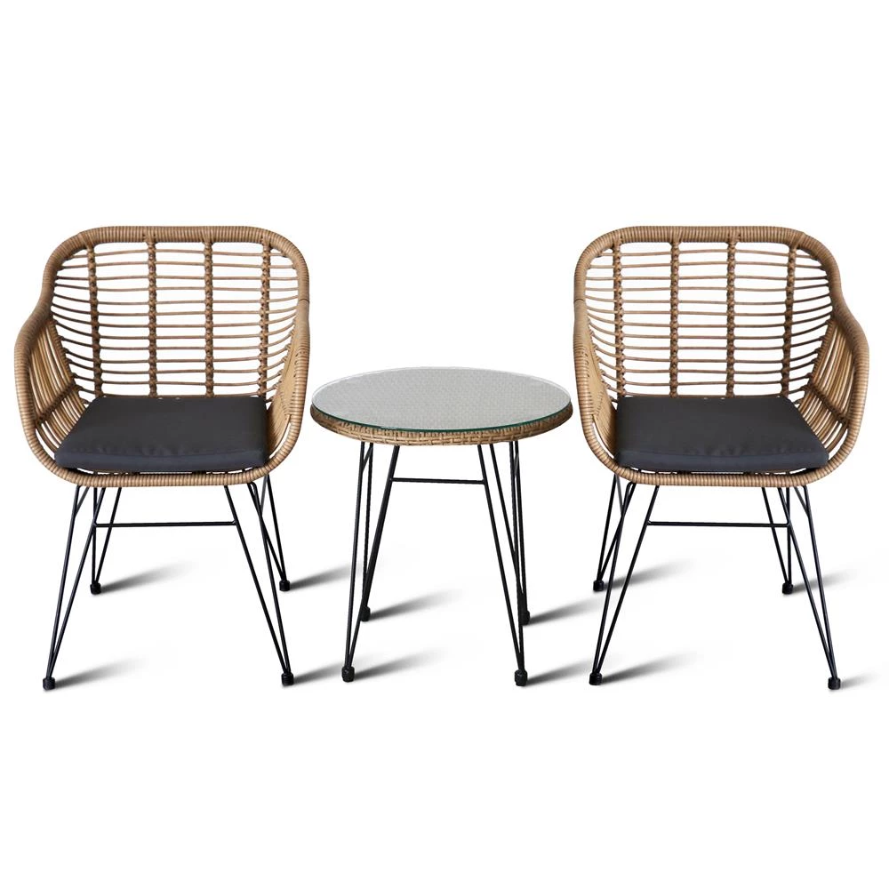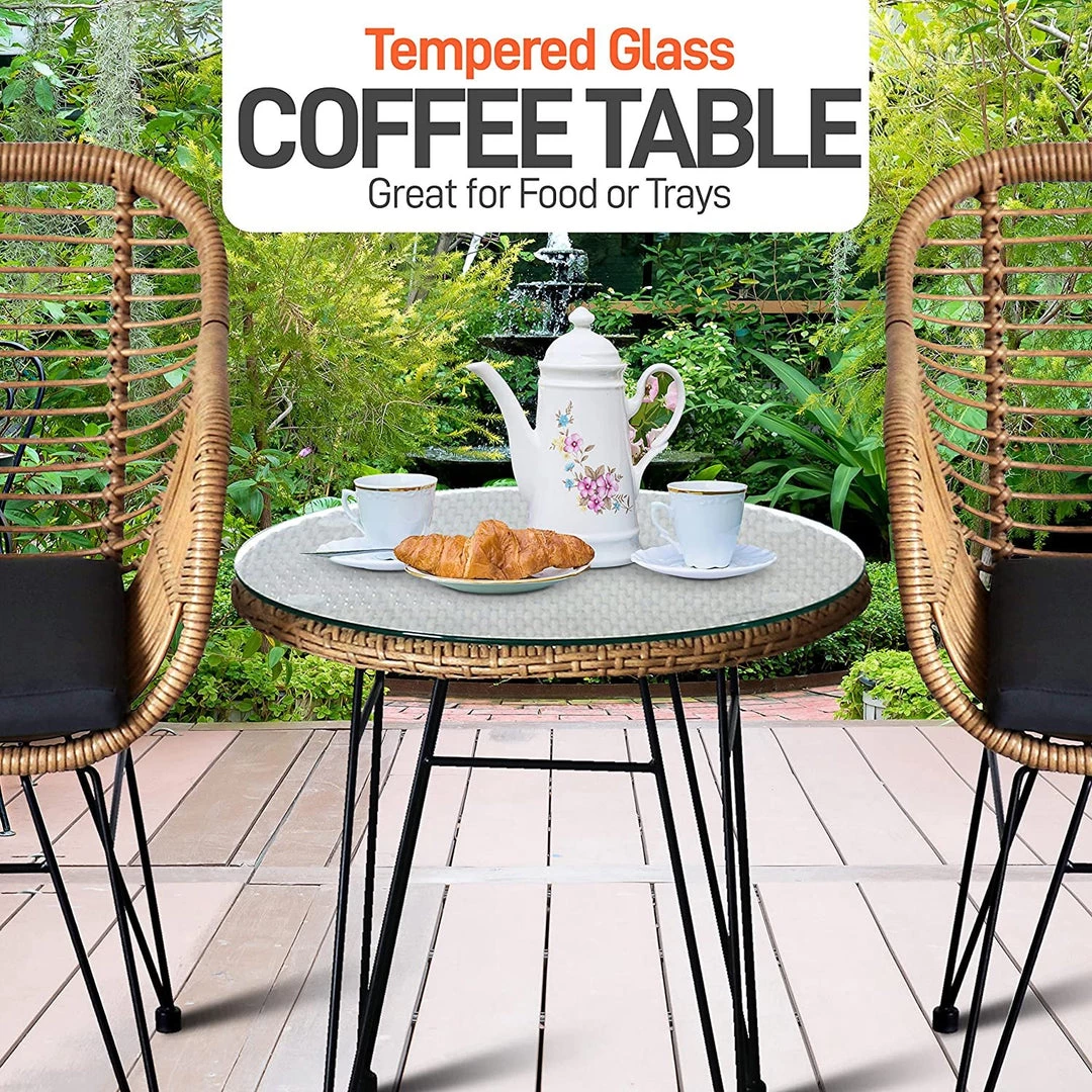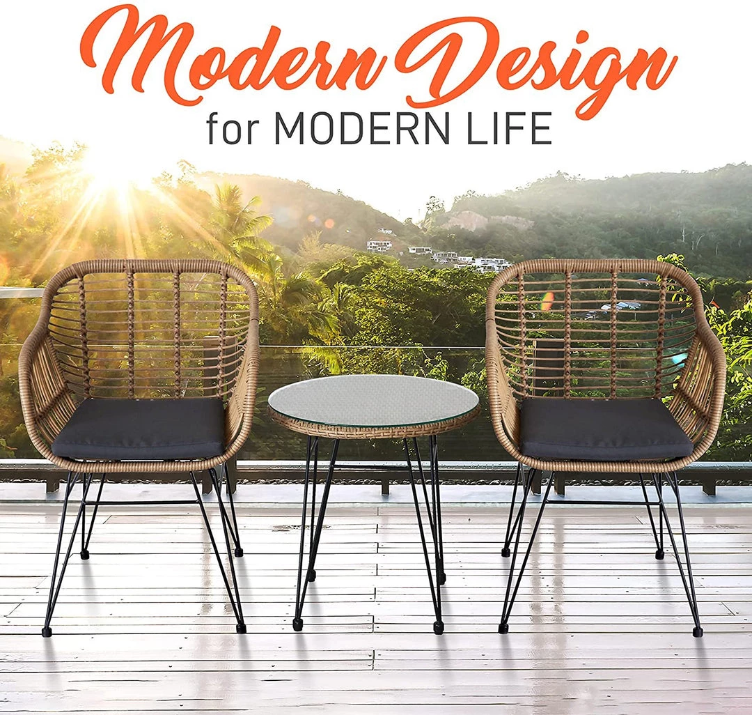 Features: – Easy to Assemble and Move – Modern Design for Modern Life – Soft Cushions for Comfortable Sit – Smooth and Very Relaxing – Anti-rust and Anti-corrosion Treatment for Long Service Life – Durable and Sturdy Rattan Wicker – Easy to Assemble – Tempered Glass Coffee Table – Zipper Designed Cushion Covers for Easy Detachable – Outdoor/Indoor Patio Furniture with Washable Cushions – Comfortable Seat Cushions made with Water-resistant Fabric – Weather-resistant Resin Wicker Rattan – Durable Powder-coated Steel Frame – Ideal for Patio, Backyard, Porch, Garden, Poolside, Balcony or Pool Side Area What’s in the Box: – (2) Single-Seat Chairs – (1) Glass Coffee Table Technical Specs: – Construction Material: PE Rattan & Steel Frame – Rattan Color: Brown – Cushion: Gray Polyester Fabric and Sponge Padded – Max. load Capacity: 220 lbs. for one seat – Single Chair (L x W x H): 22.44” x 25” x 32” -inches – Table (L x W x H): 19.7” x 19.7” x 20.3” -inches – Cushion for Single Chair (W x D): 15.7″/14.2” x 16.9” -inches