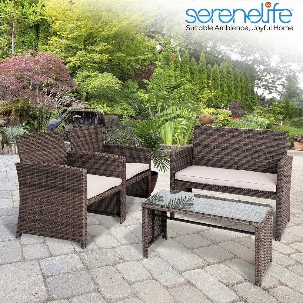 Features: – Easy to Assemble and Move – Modern Design for Modern Life – Soft Cushions for Comfortable Sit – Smooth and Very Relaxing – Anti-rust and Anti-corrosion Treatment for Long Service Life – Durable and Sturdy Rattan Wicker – Easy to Assemble – Tempered Glass Coffee Table – Zipper Designed Cushion Covers for Easy Detachable – Outdoor/Indoor Patio Furniture with Washable Cushions – Comfortable Beige Seat Cushions made with Water-resistant Fabric – Brown Weather-resistant Resin Wicker Rattan – Durable Powder-coated Steel Frame – Double Chair Offers a 500 lbs. Maximum Weight Capacity – Ideal for Patio, Backyard, Porch, Garden, Poolside, Balcony or Pool Side Area What’s in the Box: – (2) Single-Seat Chairs – (1) Double Seat Chair – (1) Glass Coffee Table Technical Specs: – Construction Material: PE Rattan & Steel Frame – Rattan Color: Brown – Cushion: Beige Polyester Fabric and Sponge Padded – Max. load capacity: 330 lbs – Single Chair (L x W x H): 23.6” x 24” x 31.1” -inches – Double Chair (L x W x H): 43.3” x 24.8” x 31.1” -inches – Table (L x W x H): 35” x 18.1” x 16.1” -inches – Cushion for Single Chair (W x D): 19.7” x 20.3” -inches – Cushion for Double Chair (W x D): 39.4” x 20.3” -inches