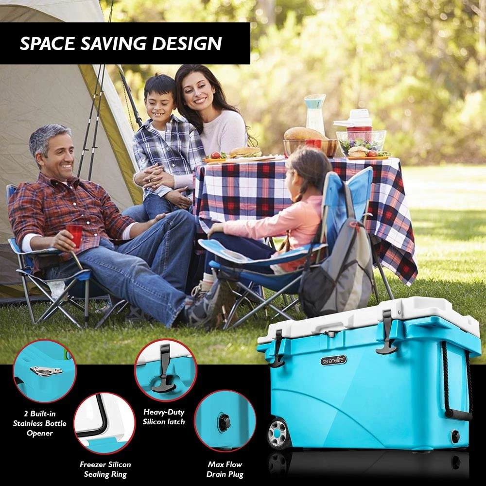 - LIGHTWEIGHT AND PORTABLE: The camping cooler with handle is made with food-grade LLDPE inside/outside, PU Foam Middle layer and has a space-saving design and equipped with 2-way handles for easy lifting and carrying