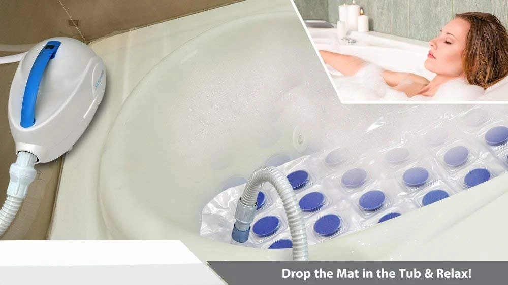 - EASY-TO-USE BATH SPA: Simply drop the spa bathtub mat in the tub and instantly create a soothing jacuzzi bath spa right at home. The tub spa massager features a built-in heater and keeps warm function, as well as adjustable bubble settings