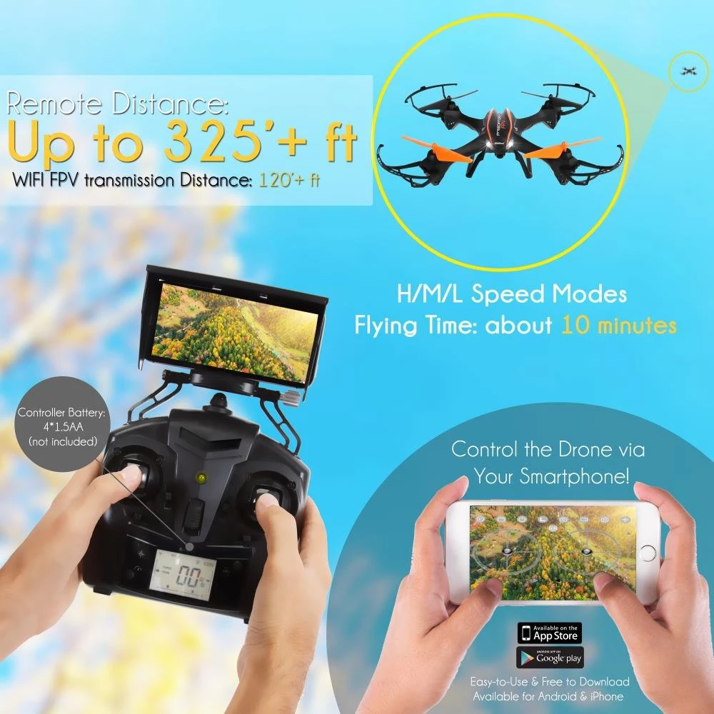 The headless mode makes it easier to fly and control a quadcopter drone, so this will be an easy and safe experience.