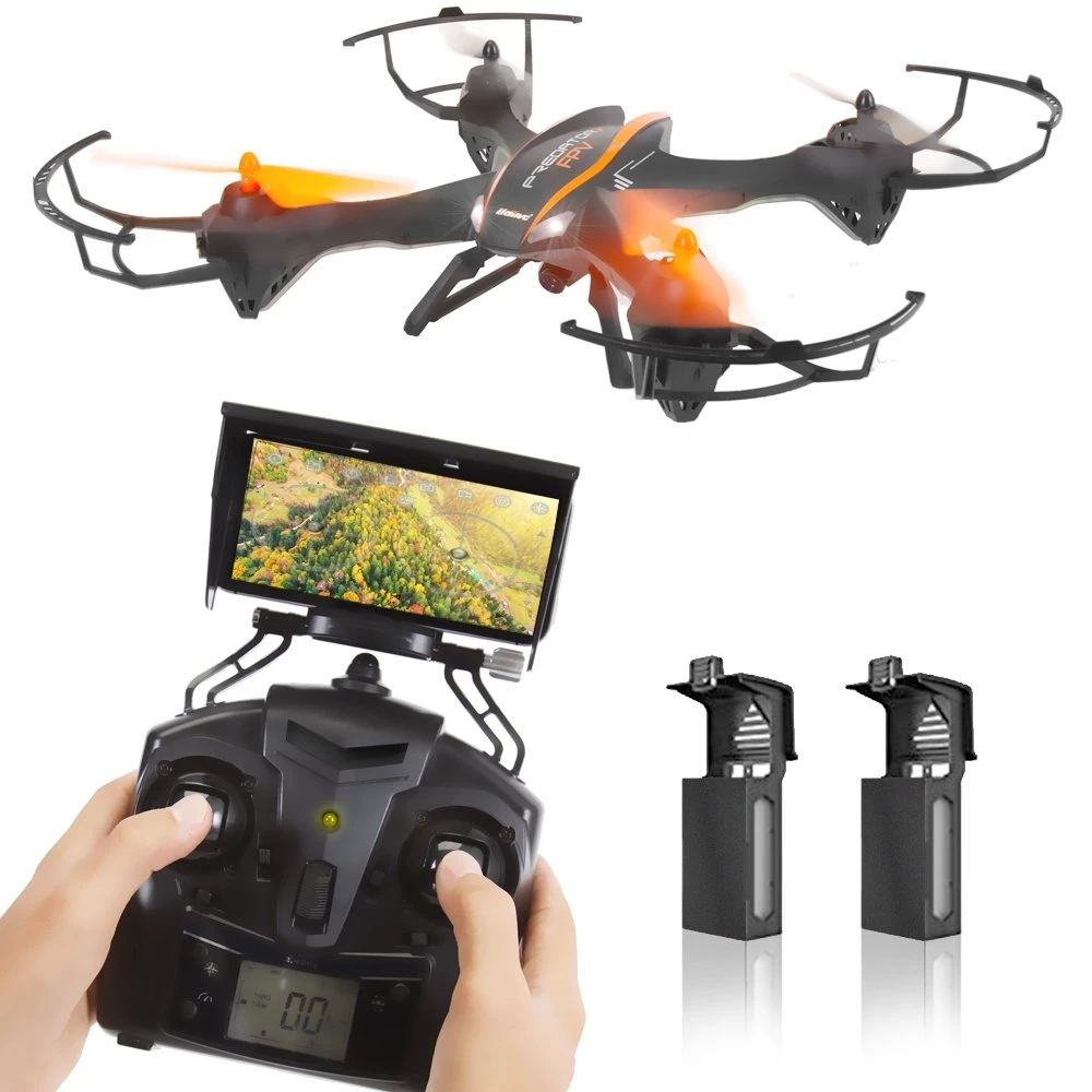 - A VIEW FROM A HEIGHT: Do you want to see the world from the clouds without having to get your feet off the ground? The FPV drone will allow you to take detailed pictures and to record and stream real-time videos in high definition of the world from above. You can take aerial footage in 720p Hd / 30 Fps and show off to your friends.