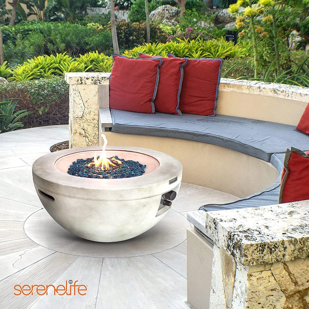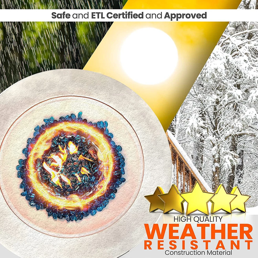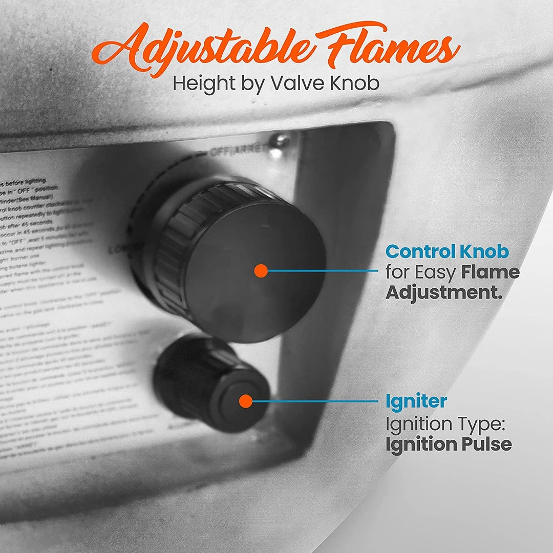 - COMPLETE SET: The round firepit propane fire table complete set includes 201 SS burner, copper injector, control knob, gas valve, igniter, corrugated pipe, thermocouple, fire pin with protective guard, PVC cover, lava rock, user manual