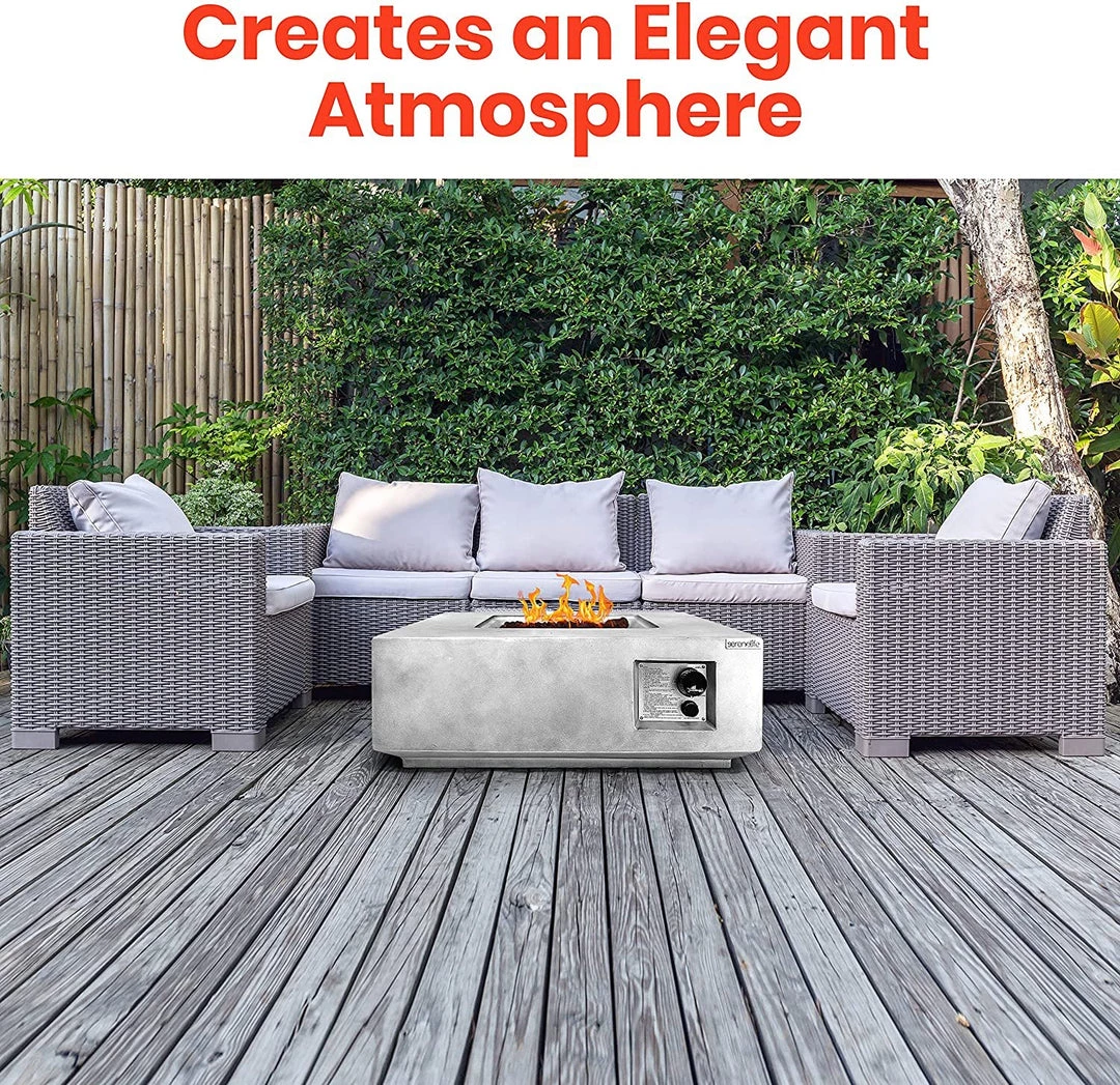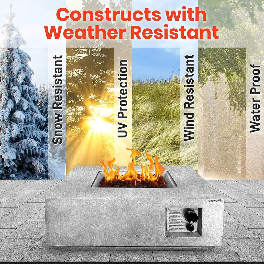 - MADE TO LAST: This sturdy outdoor propane gas fire pit table features a weather-resistant heavy-duty MGO construction material & comes w/ a PVC cover to protect it from UV rays, rain, & dust