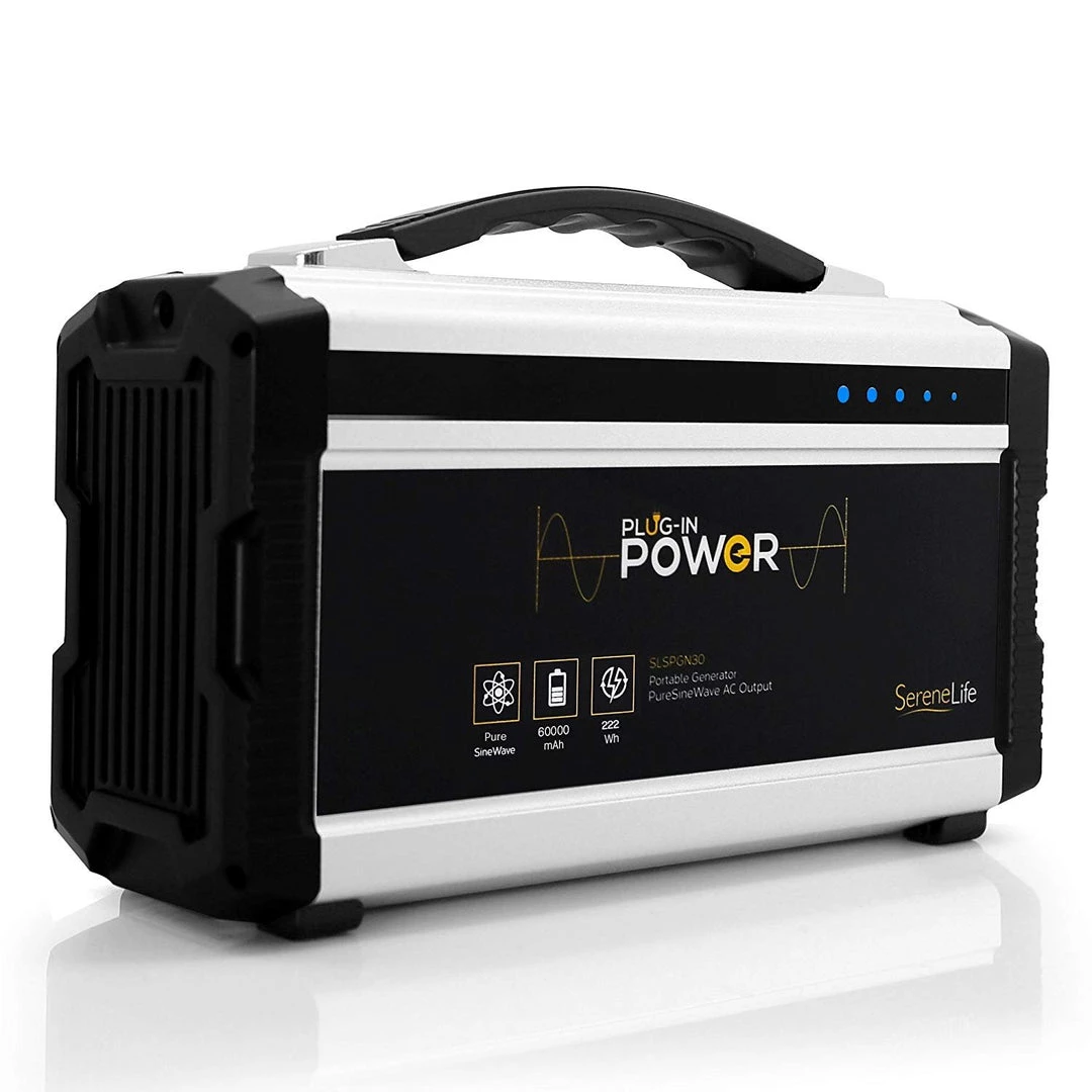 The SereneLife’s portable generator is a 222-watt power pack with a rechargeable battery and multiple charge ports allowing for simultaneous charging. This is an ideal device for camping, tailgating, beach trips, and other outdoor recreation. It is conveniently designed to provide quiet and clean power for smartphones, laptops, tablets, cameras, and even small household appliances. This compact power supply is an excellent short-term solution to keep your gadgets charged up while you’re outdoors.