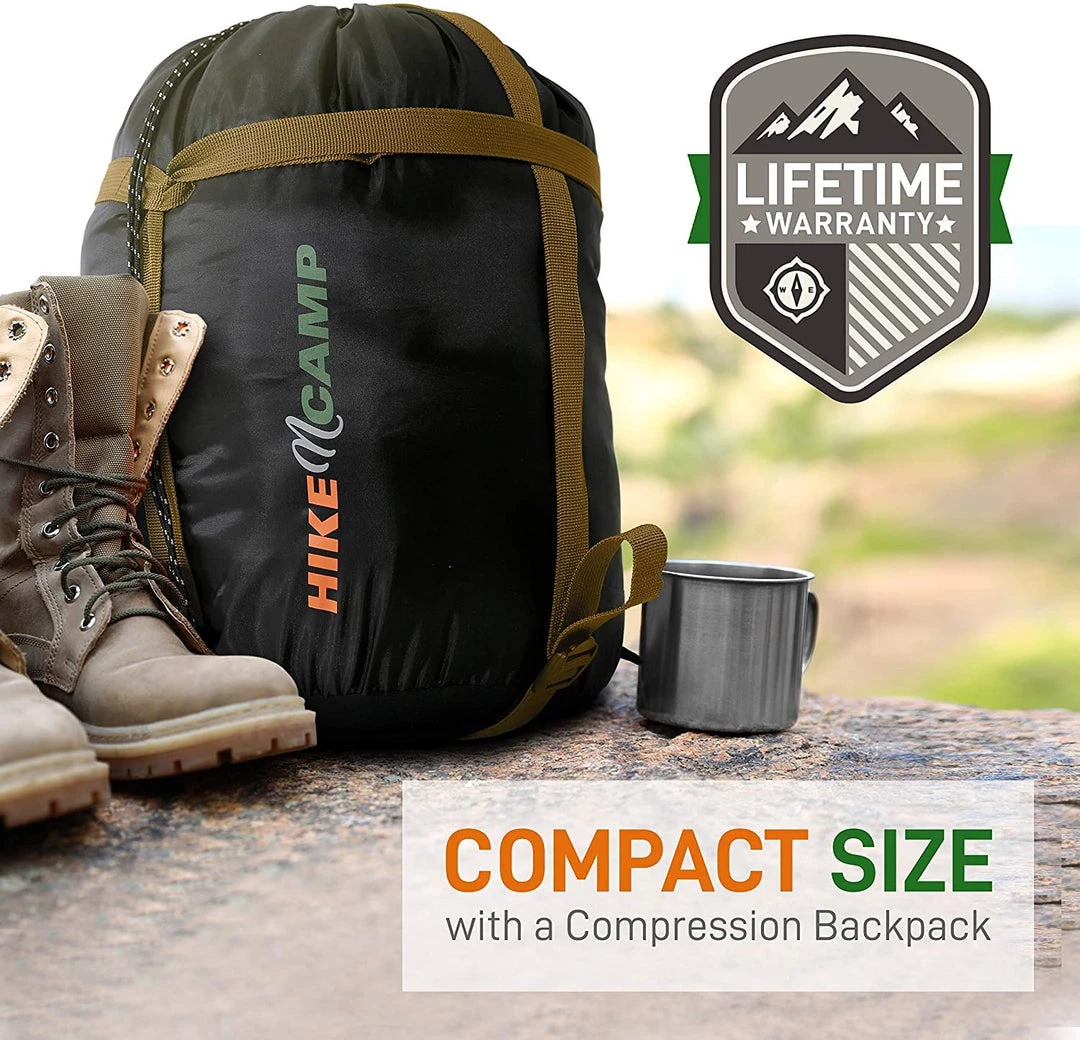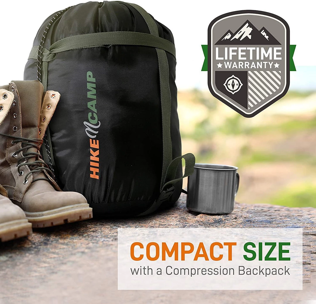 - LIGHTWEIGHT EASY TO CLEAN: This sleeping bag outdoor is easy to clean, warm, comfortable, & washable. Has 5-10° Fahrenheit temperature rate to keep you warm and rolls into a compact size and easily fits inside the included compression backpack