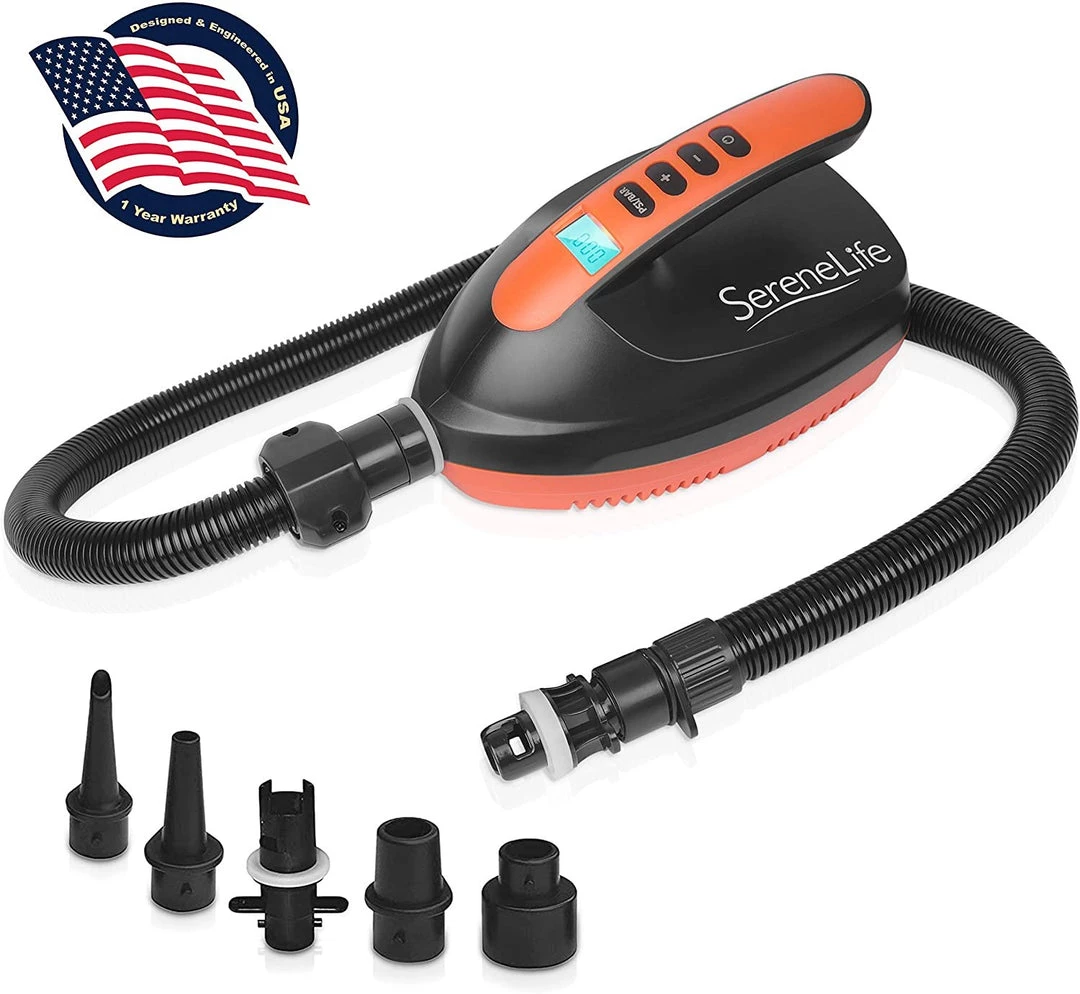 - HASSLE FREE OPERATION: The 110-watt air pump is equipped w/ a digital LCD display & button controls for easy operation. Great for both indoor & outdoor use, water sports, and camping trip and is ideal for inflatable SUP, boat, pool inflatables & more