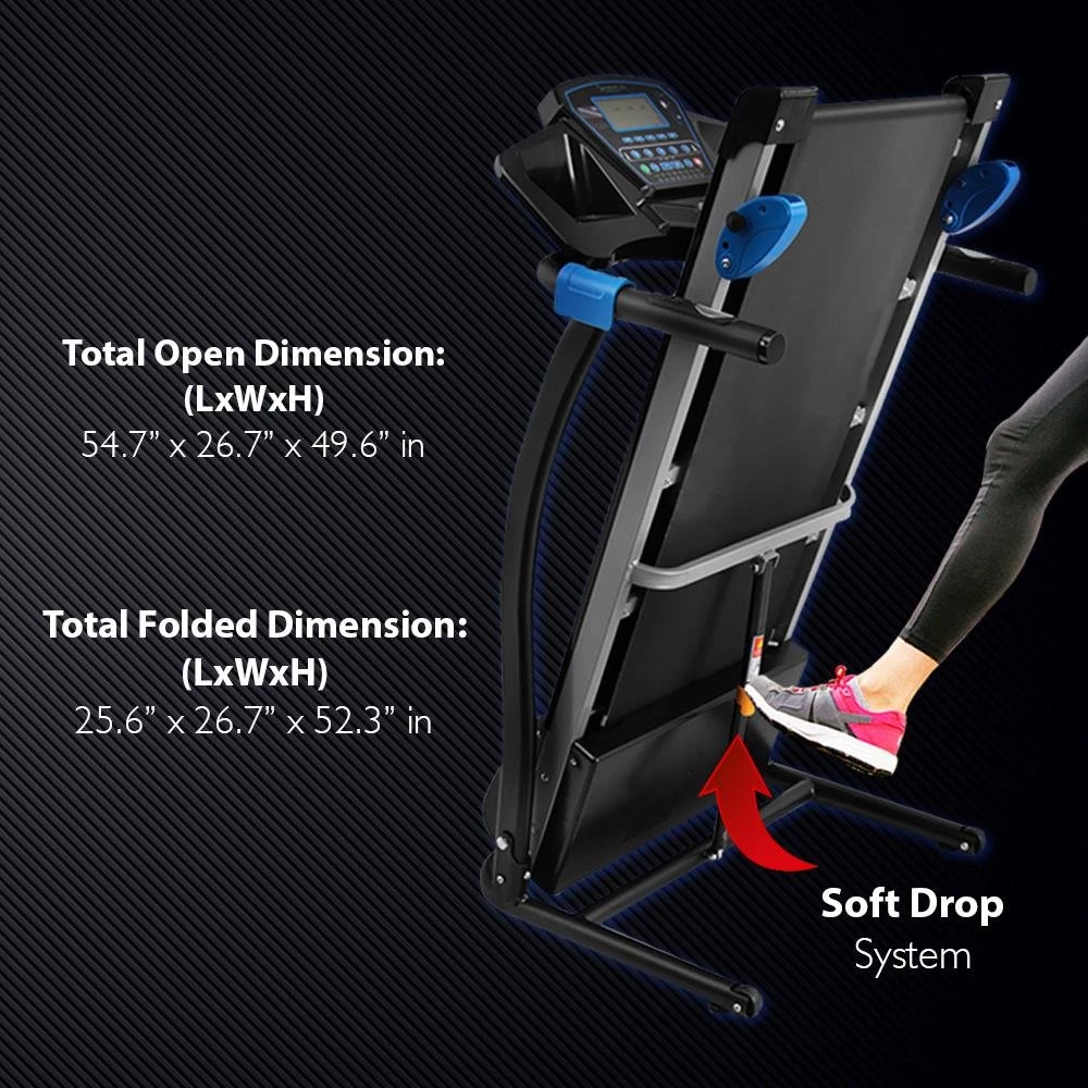 - CONVENIENT FOLDING STYLE: This treadmill is portable & foldable for easy setup & storage. It comes with simple electric plug-in design, motorized treadmill power of 1.5HP, built-in grip sensors for pulse monitoring & adjustable speed up to 7.5mph