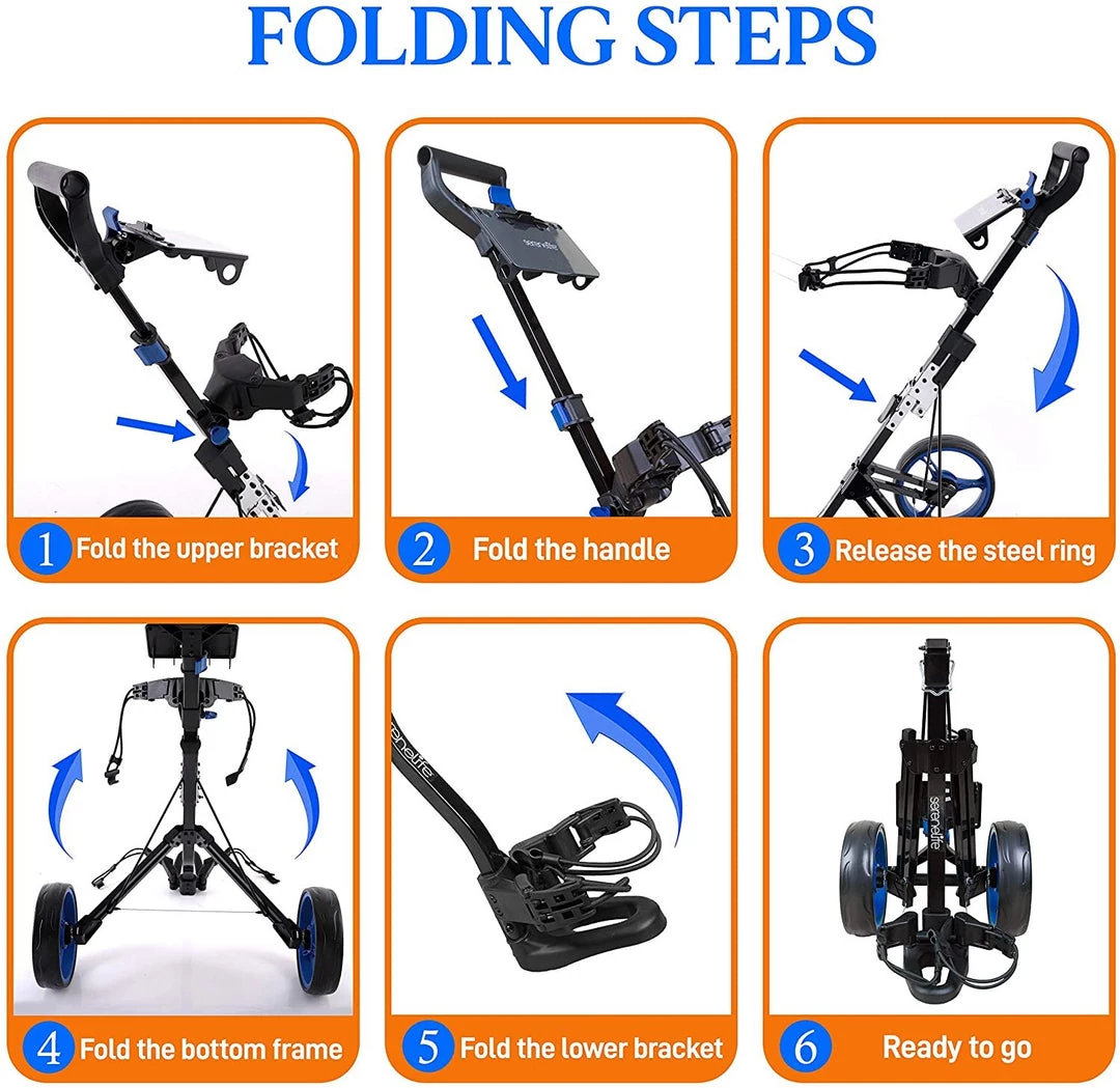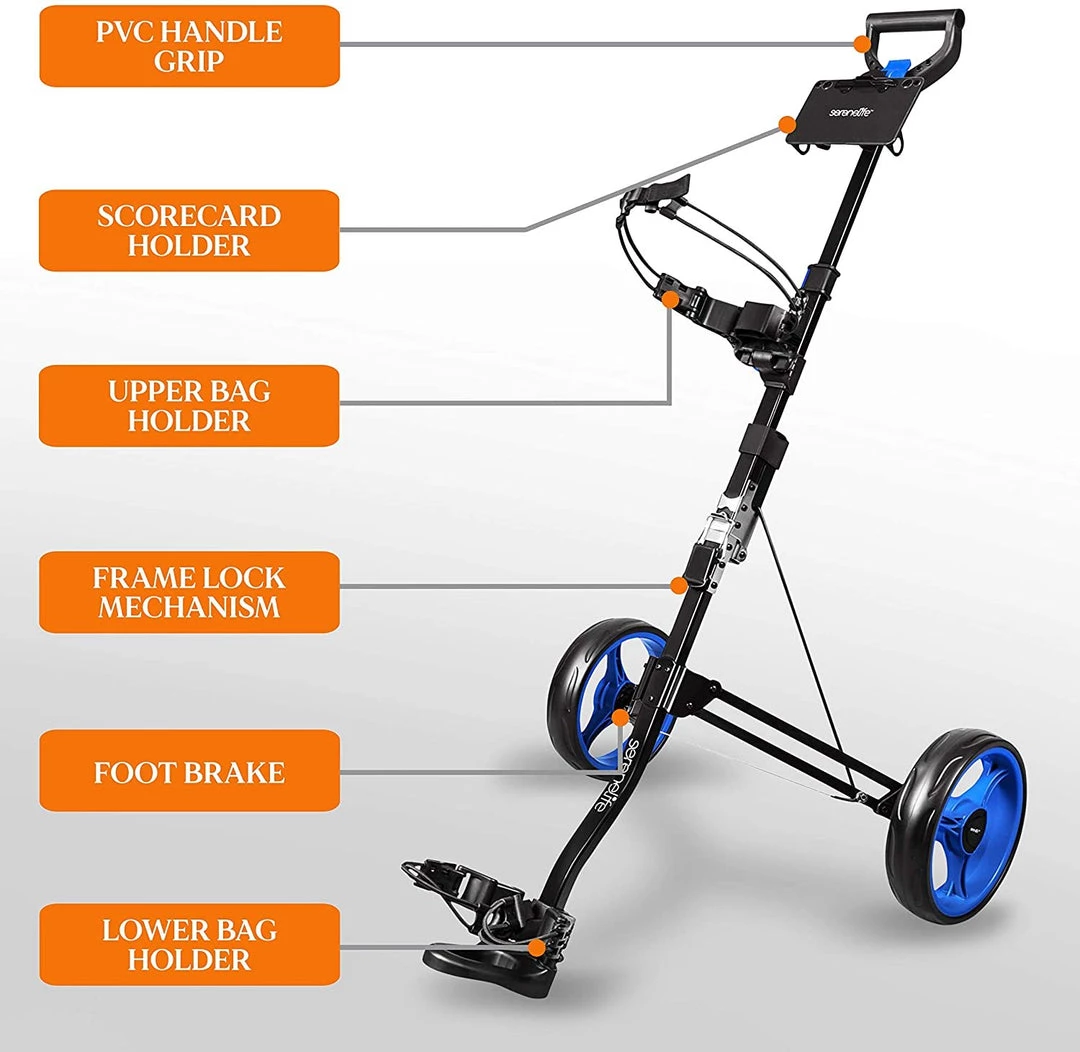 - BALL BEARING WHEELS: SereneLife golf carts push pull golf bag roller cart are equipped w/ two ball bearing wheels that provides balance and easy mobility on the course and traction on all types of terrain for a smooth roll