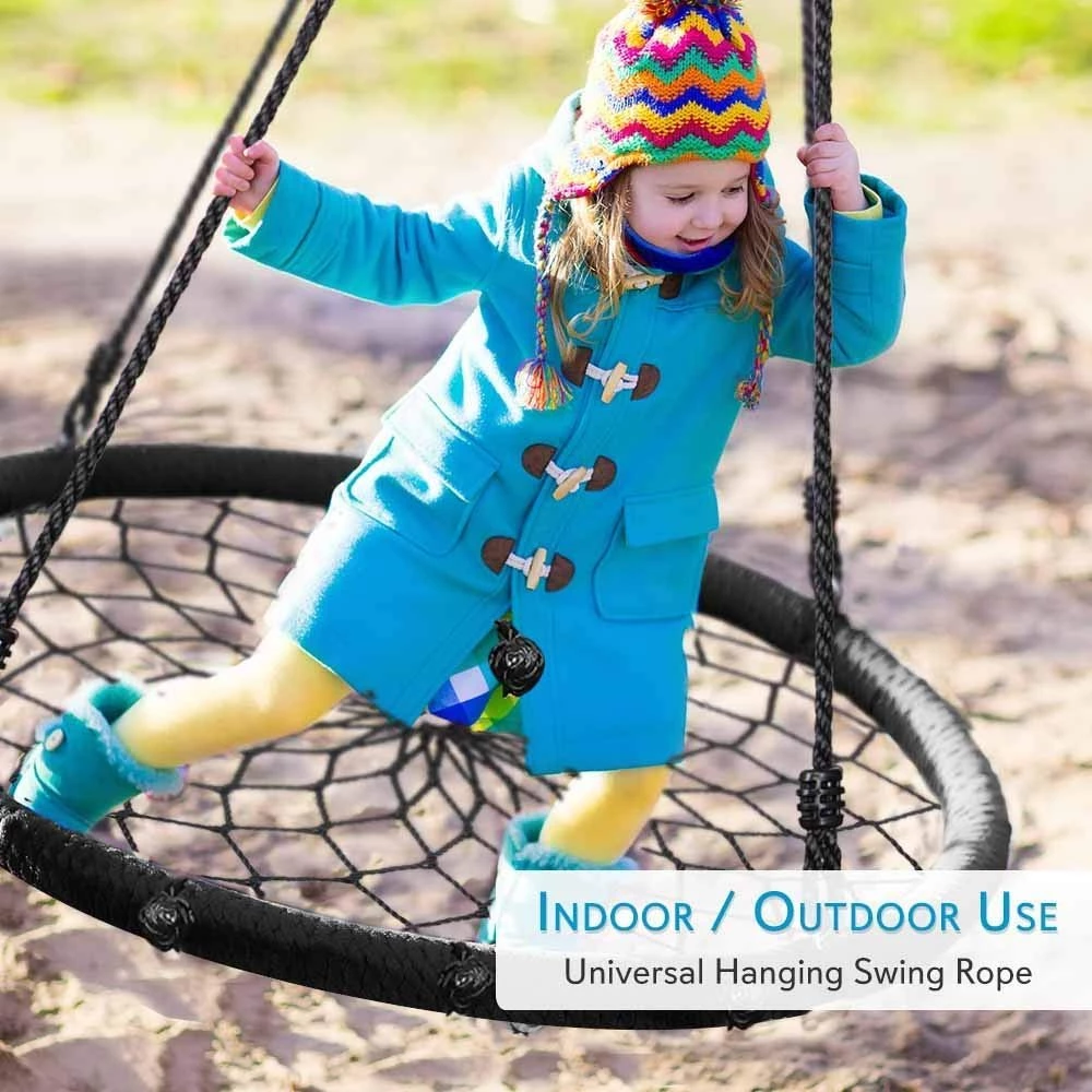 - SUPPORTS UP TO 600 LBS: This webbed net round seat spinner ride features durable thick braided swing rope straps ensuring your kids safety. It has a weight capacity of up to 600 lbs, even adults can have a safe and fun ride on the hanging rope swing