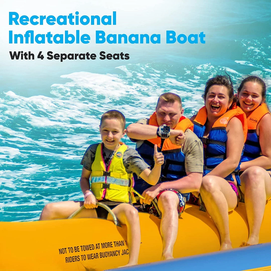 - 4 PERSON BANANA BOAT: Four people may relax and have fun in this inflatable banana boat since it has two separate seats. Enjoy unlimited hours of summer fun at the pool or beach, which is suitable for both children and adults