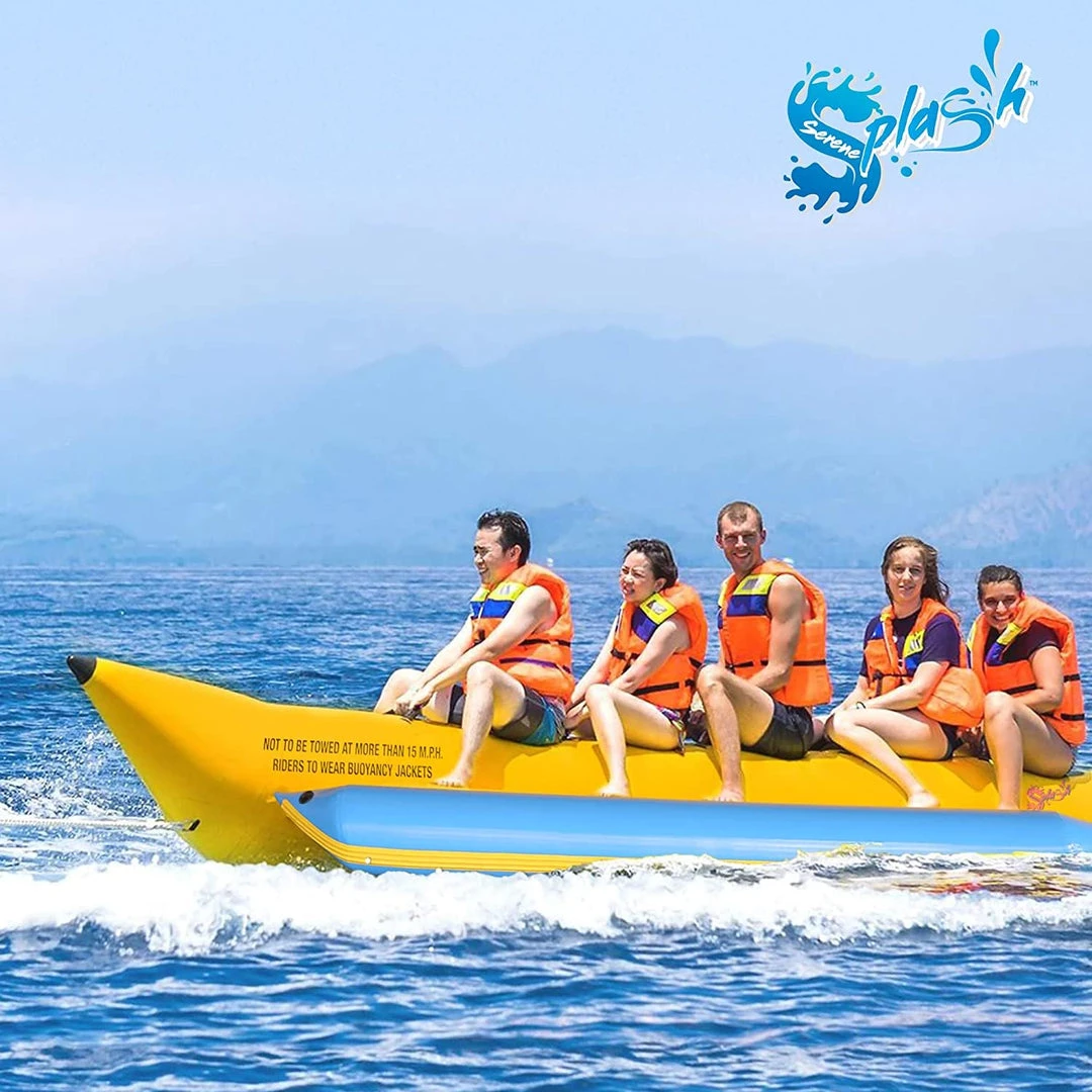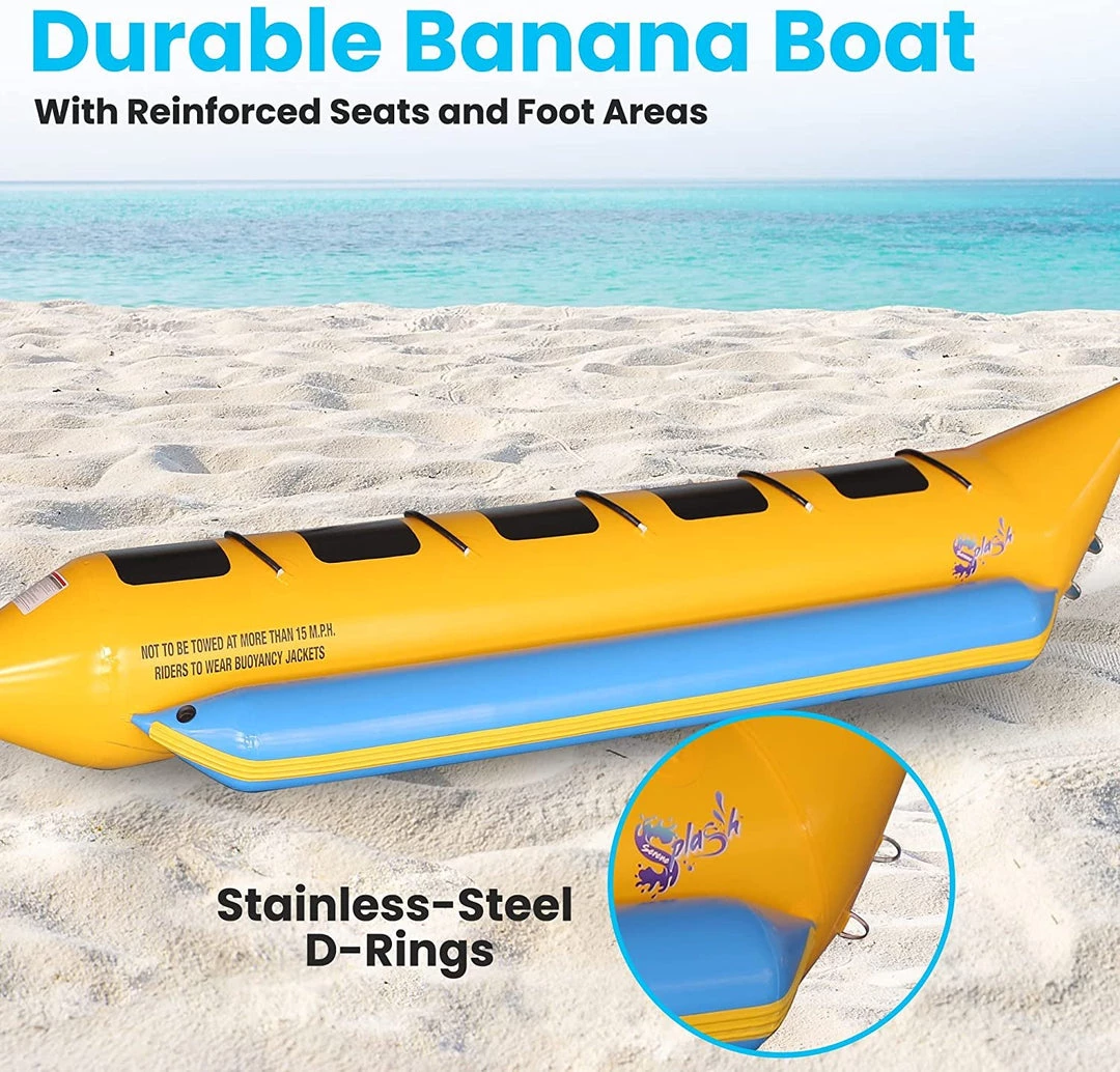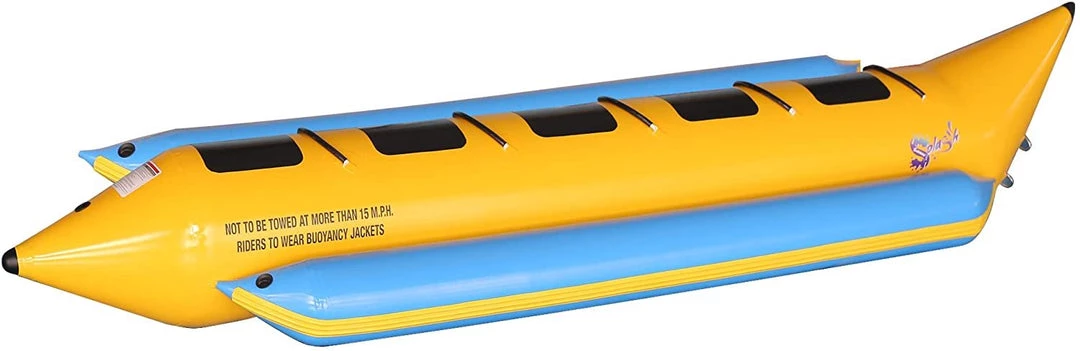 - 5 PERSON BANANA BOAT: Five people may relax and have fun in this inflatable banana boat since it has two separate seats. Enjoy unlimited hours of summer fun at the pool or beach, which is suitable for both children and adults