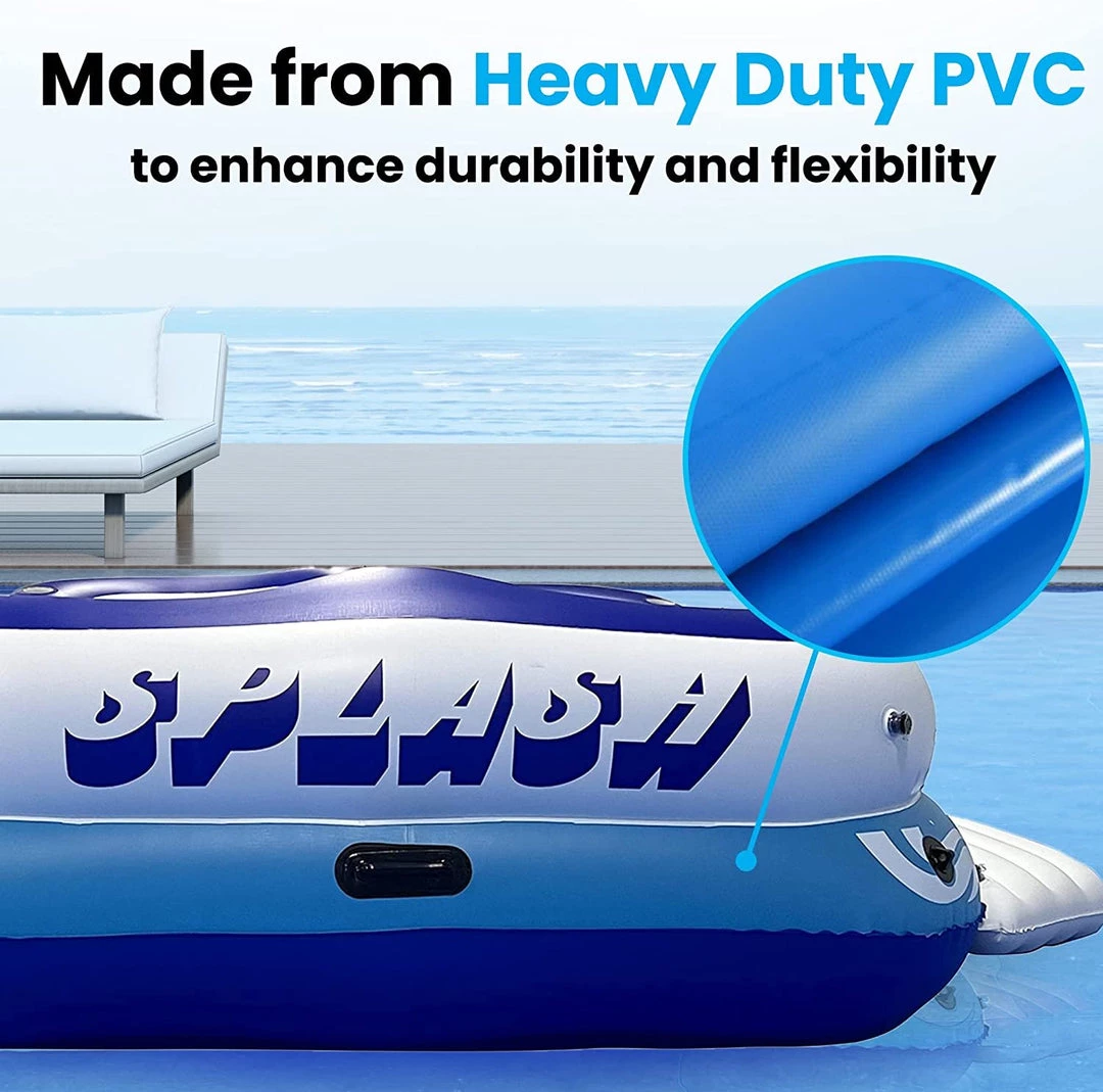 - 4 SEATER INFLATABLE LOUNGE: Four people may relax and have fun in this inflatable banana boat since it has two separate seats. Enjoy unlimited hours of summer fun at the pool or beach, which is suitable for both children and adults