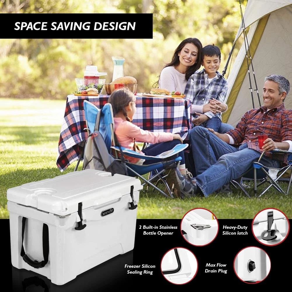- LIGHTWEIGHT AND PORTABLE: The camping cooler with handle is made with food-grade LLDPE inside/outside, PU Foam Middle layer and has a space-saving design and equipped with 2-way handles for easy lifting and carrying