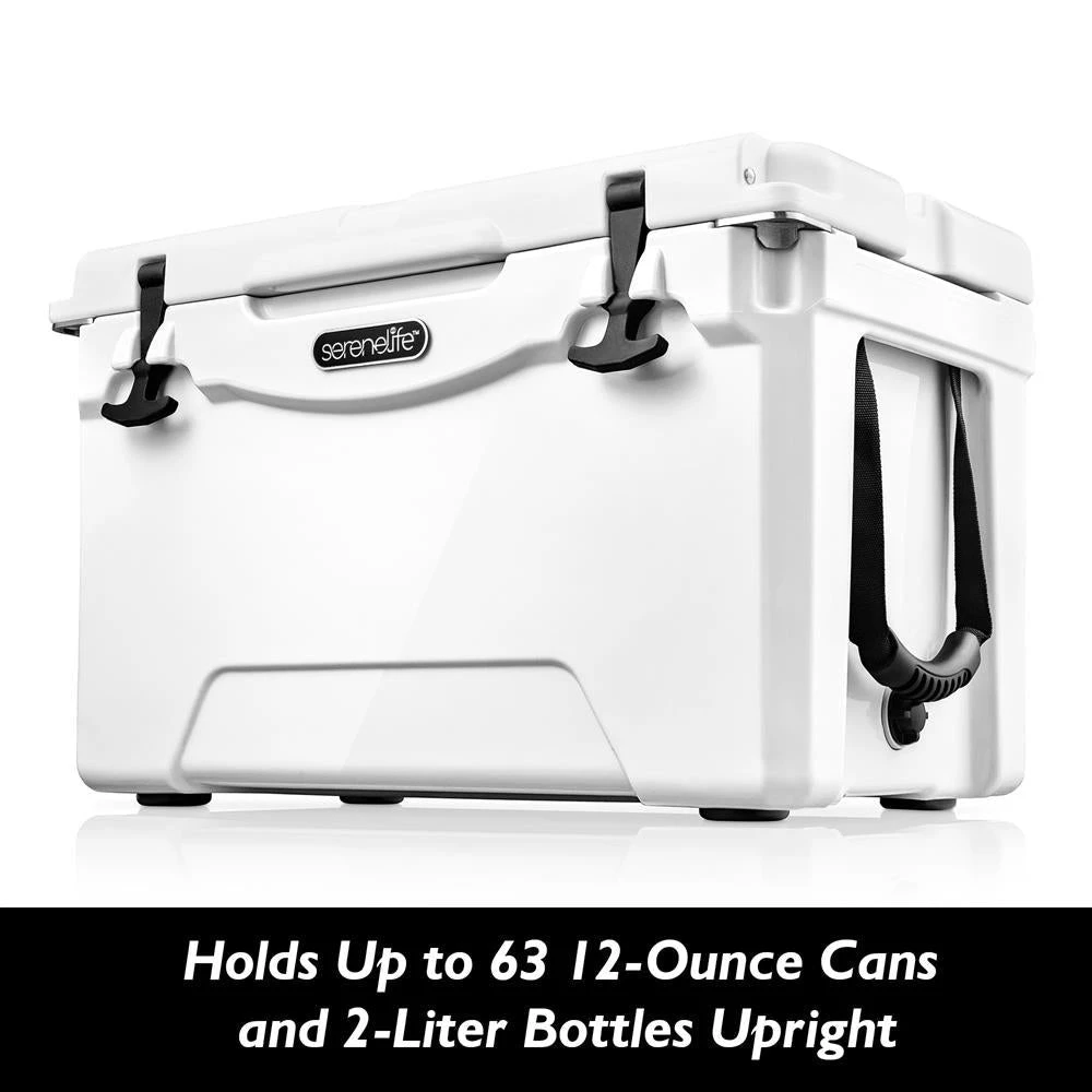 Features: – Keeps Food and Beverages Cold – Holds Up to 63 12-Ounce Cans and 2-Liter Bottles Upright – 2-Way Handles for Easy Lifting and Carrying – Leak-Resistant Drain and Rust-Proof – Space-Saving Design – Smoother Surface Wipes Clean Easily – Durable of a Hard Plastic Exterior and Hinged Lid – Constructs with Thermomize Insulation to Keep Food and Beverages Fresh and Cold – Low CO2 Insulation for Reduced Carbon Emissions from Foam Manufacturing – Perfect for Afternoons on the Beach, Game Field, and more. What’s in the Box: – Cooler Box Technical Specs: – Max. Temperatures: Up to 90 °F (32 °C) – Can Capacity: Holds 63 Cans, Added Height to Hold 2-Liter Bottles Upright – Quart Capacity: 35 Qt. – Ice Retention (Days): 5 – Construction Materials: Food-Grade LLDPE Inside/Outside, PU Foam Middle Layer – Product Dimensions (L x W x H): 23.6” x 14.5” x 15.5” -inches