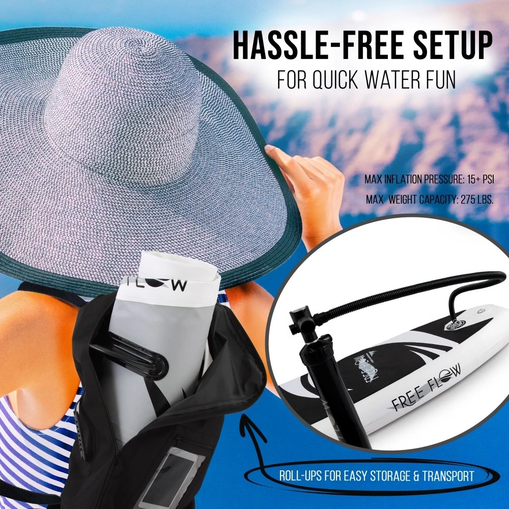 - 🛶 EASY STEERING AND MANEUVER: This free flow paddleboard SUP features (3) bottom panel fins for speed, hassle-free steering, and maneuverability for an exceptional surf control so can glide and skim the water like a sea creature