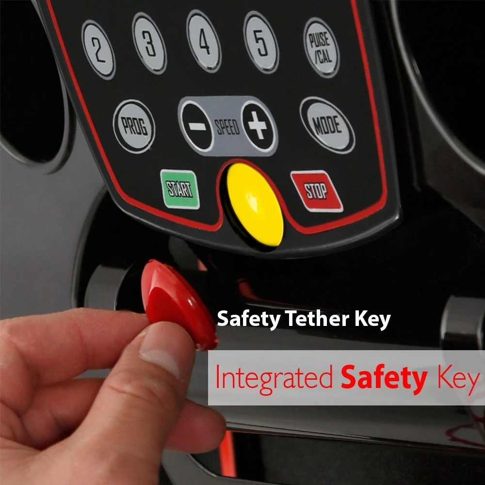 - SAFE TO USE: Stay safe & get an effective workout with this foldable treadmill. It comes with integrated safety key & emergency shut-off button to cut power instantly. Perfect for jogging, walking, running & cardio workout at home