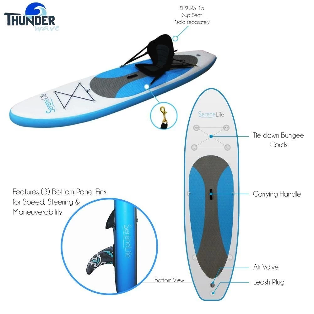 - WIDE SUP DESIGN – The SereneLife stand up paddling board is 10’ long and provides 30” of deck width for improved stability and balance while standing