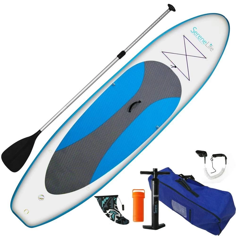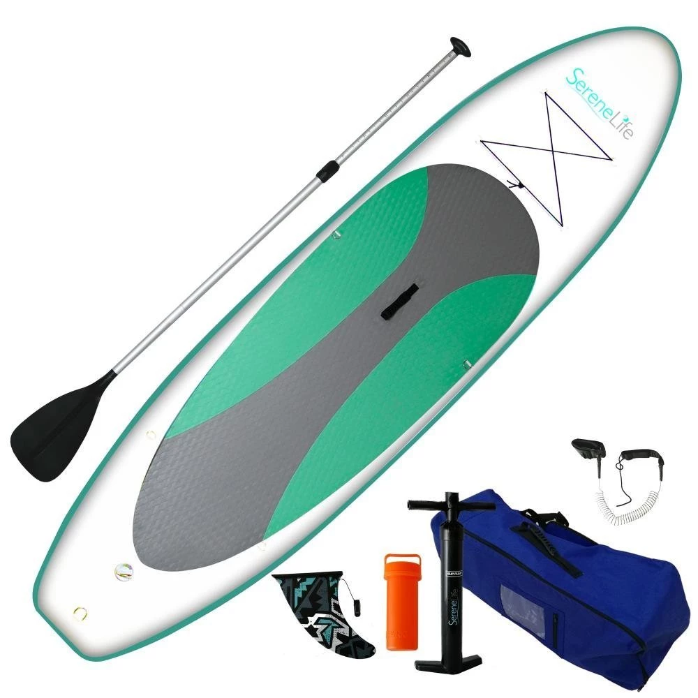 - COMPLETE PADDLEBOARD KIT – Every SereneLife Paddle Board also comes with paddling essentials, including a coiled ankle cuff safety leash, oar, manual air pump, and convenient storage bag!