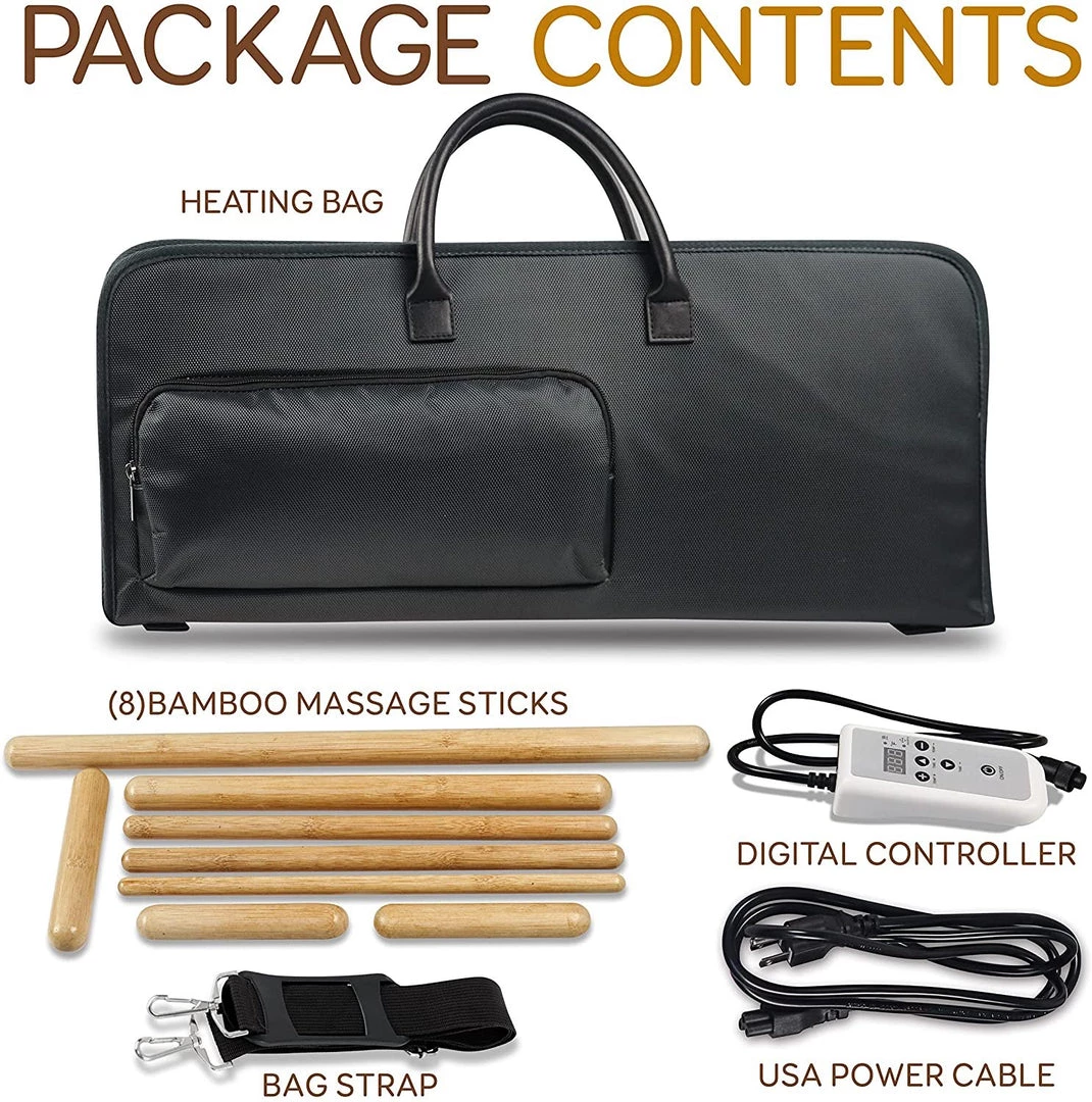 - INCLUDES HEATING BAG: The electric hot bamboo massage warmer set comes w/ a lightweight energy-efficient storage / travel bag case that doubles as stone/bamboo sticks heater oven. Designed to comfortably hold all 8 included bamboo massage sticks