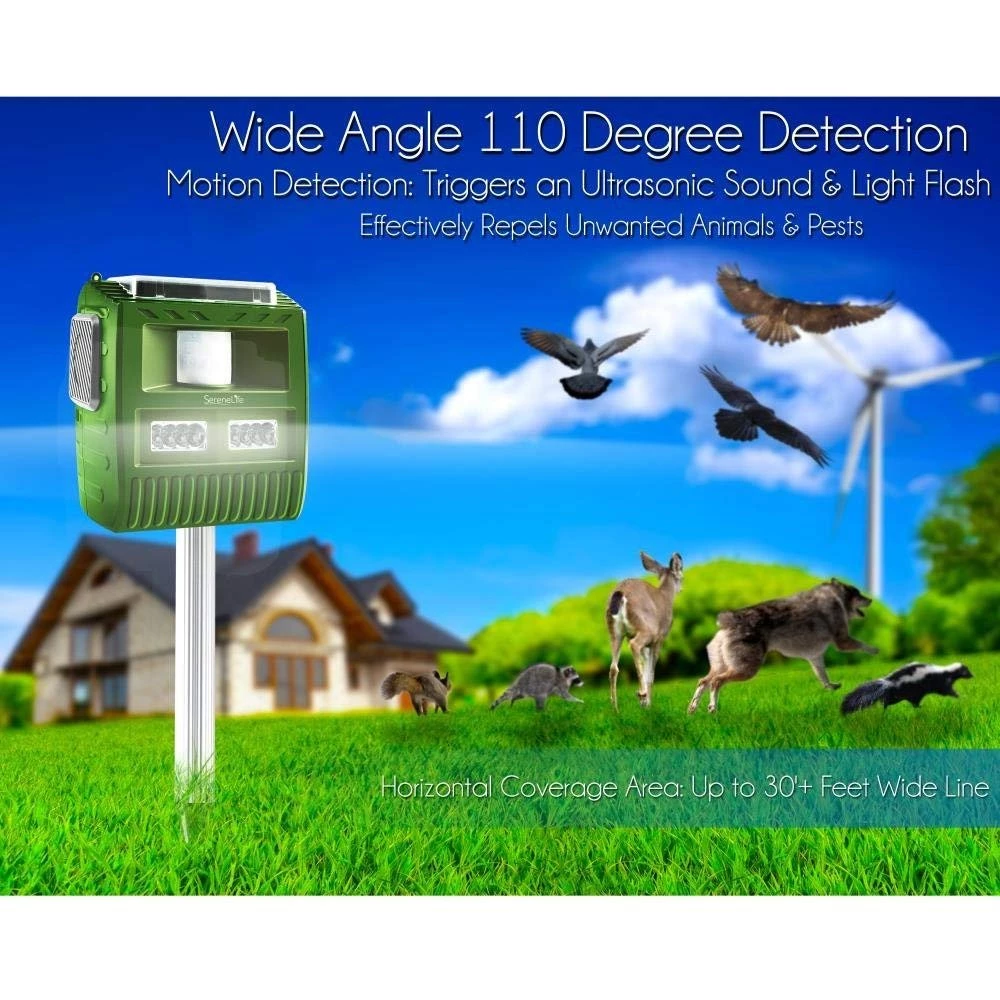 SereneLife Waterproof Solar Animal Chaser, Electric Pest Repeller, Solar Animal Repeller, Outdoor Motion Detector, Pest Control, Ultrasonic Sensor, Coverage Area: Up to 30’+ Ft